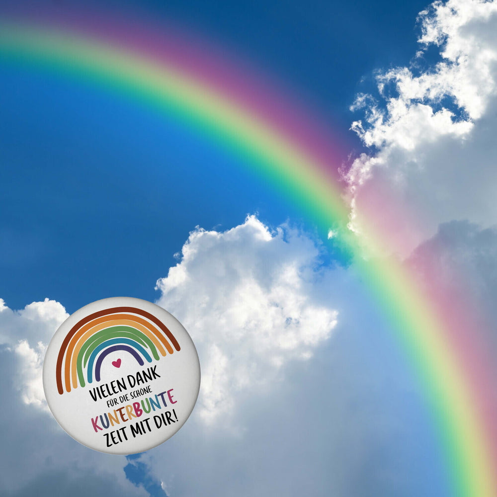 Regenbogen Magnet rund mit Spruch Danke für die kunterbunte Zeit