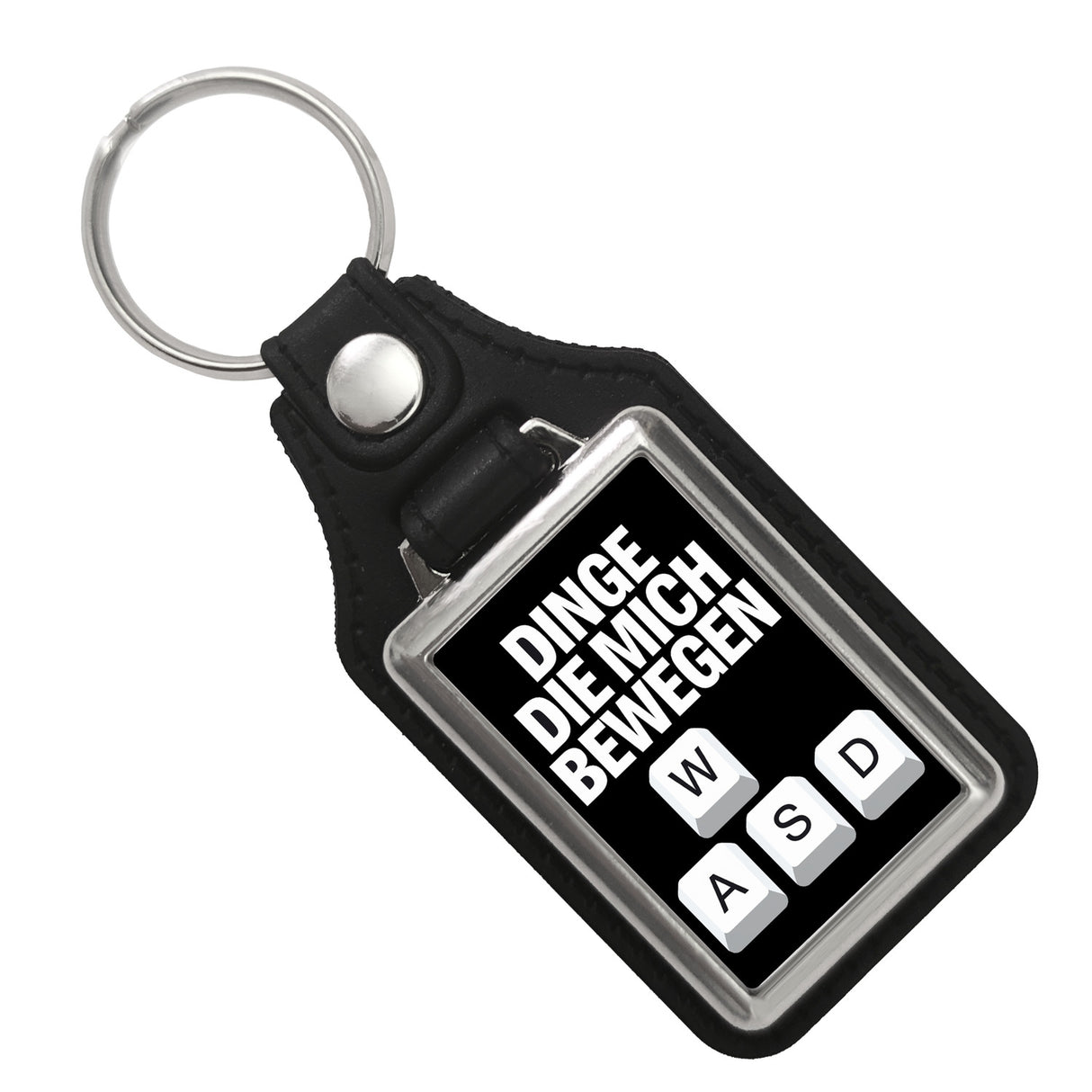 - Der WASD Gamer Schlüsselanhänger ist ein Hingucker für Technikbegeisterte. Mit einem coolen schwarzen Hintergrund und fettem, weißen Text, der "DINGE DIE MICH BEWEGEN" verkündet, zieht er alle Blicke auf sich. Darunter prangen grafische Darstellungen von Computertastaturen mit den ikonischen Buchstaben W, A, S und D.