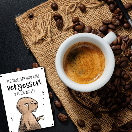 Ab €12,95Grundpreis /Nicht verfügbarAuf LagerBiber Metallschild in 15x20 cm mit Spruch Kam, sah, habe vergessen