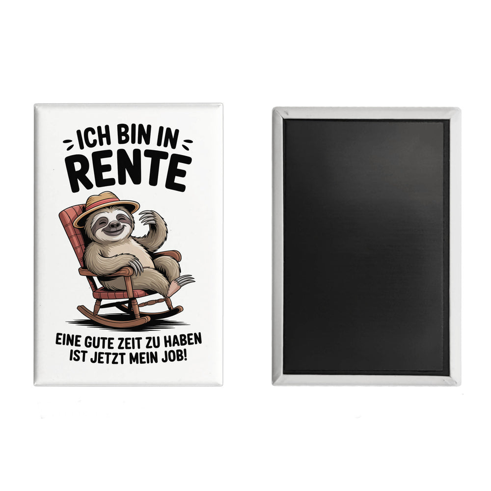 - Dieser fröhliche Kühlschrankmagnet zeigt ein niedliches Faultier, das lässig in einem altmodischen Schaukelstuhl chillt. Mit Strohhut, übergroßen Brillen und einem entspannenden Lächeln ist es der Inbegriff von Ruhe. Der Spruch "Ich bin in Rente. Eine gute Zeit zu haben ist jetzt mein Job!" verleiht dem Design einen humorvollen Touch.
