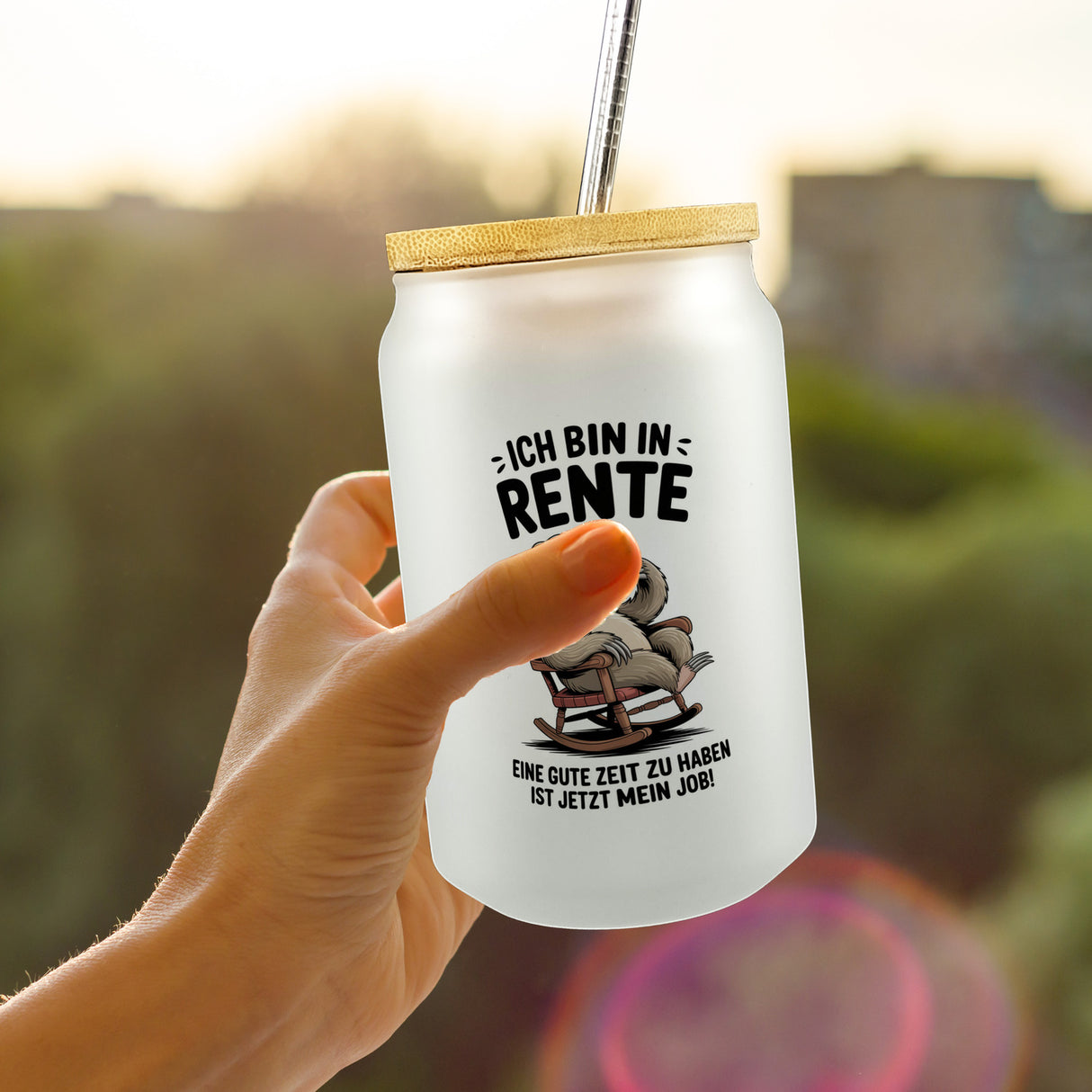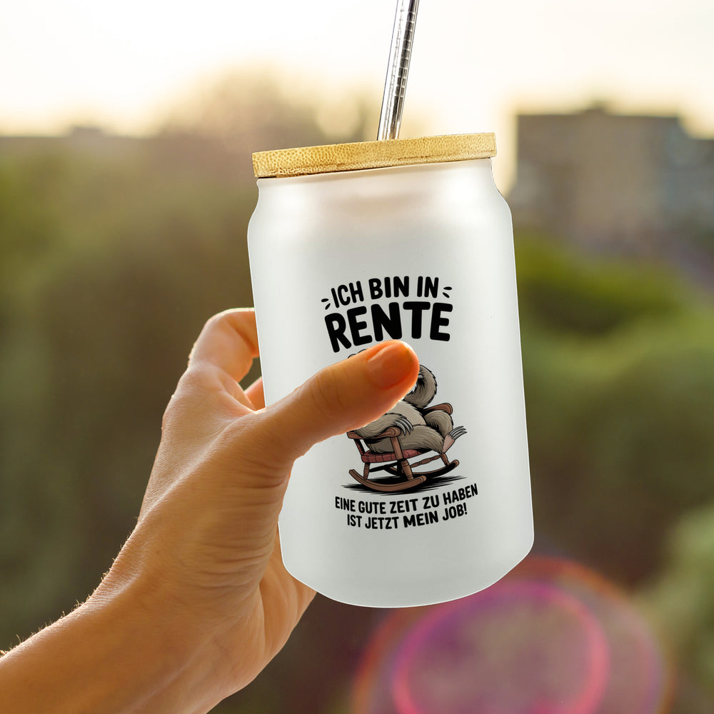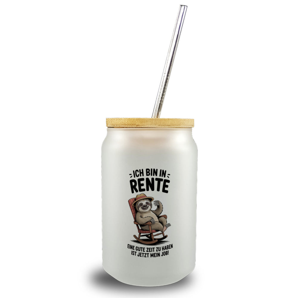 Faultier Ruhestand Trinkglas mit Bambusdeckel für Rentner