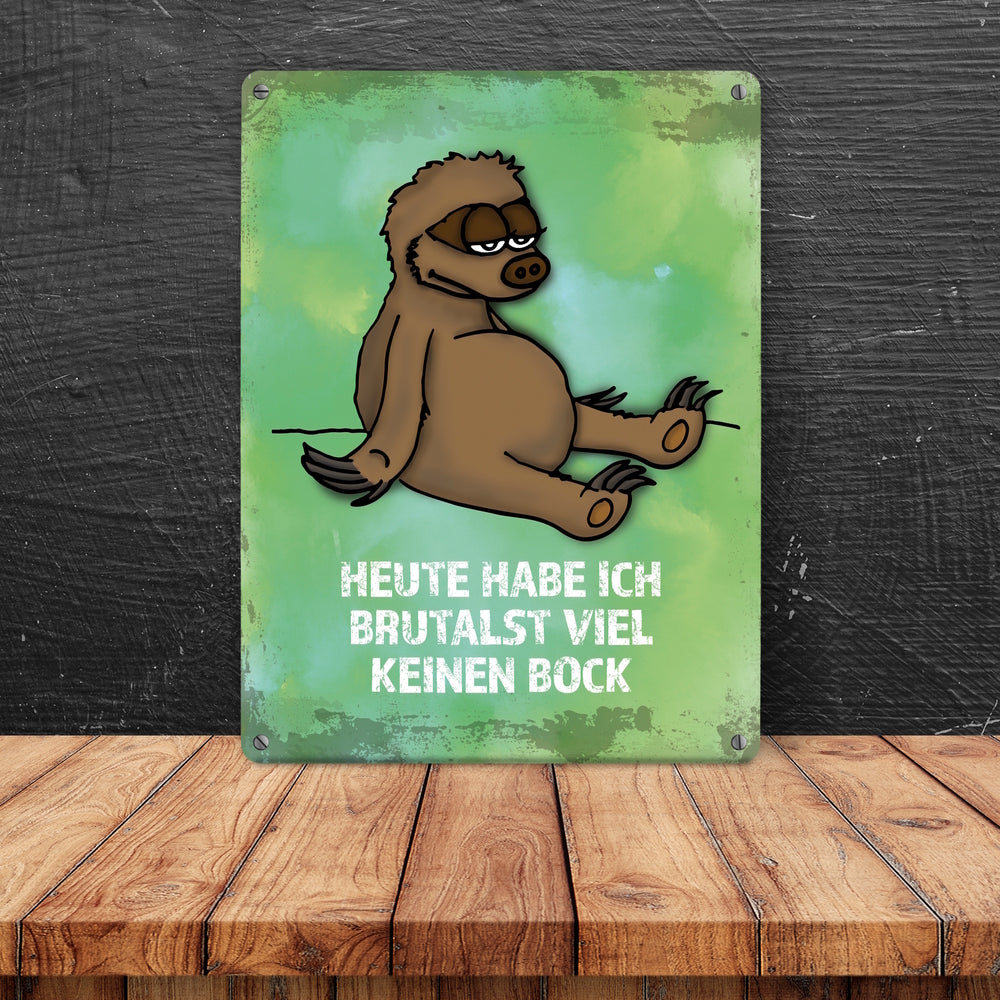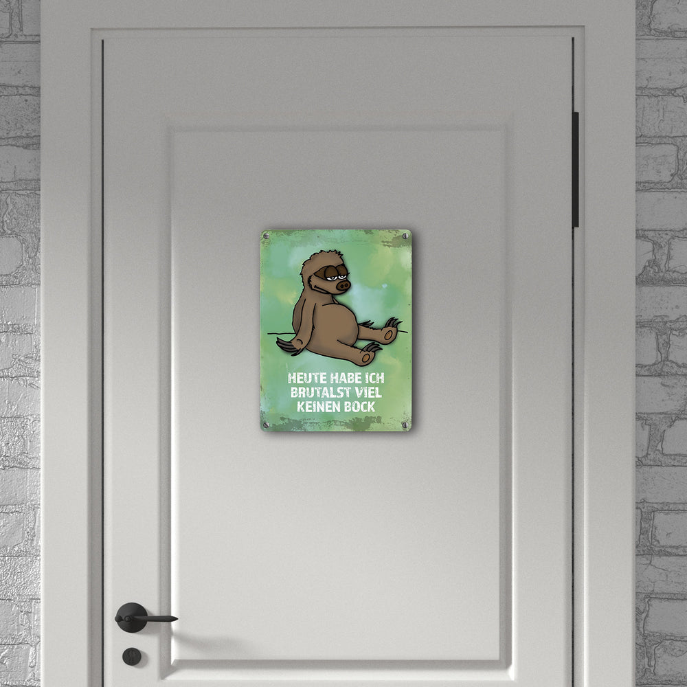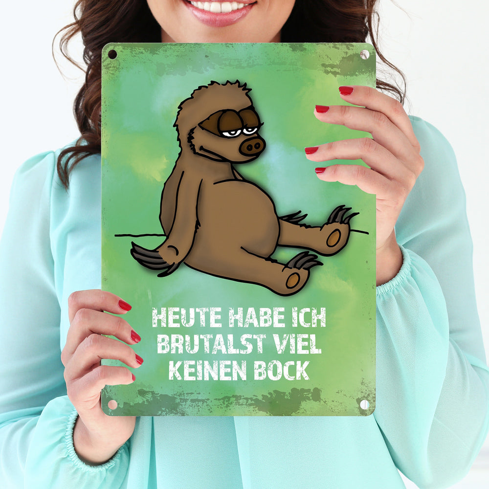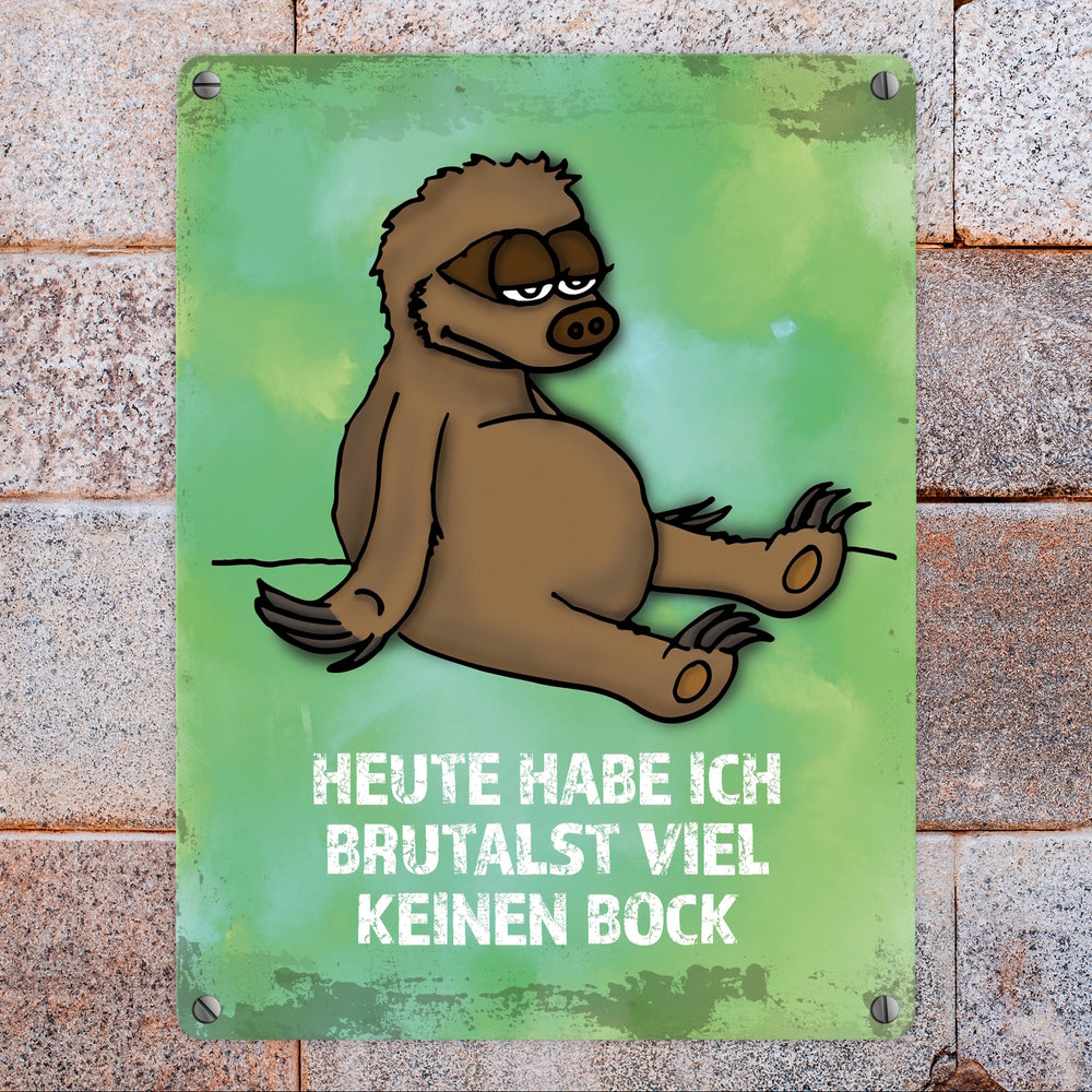 Metallschild mit Faultier Motiv und Spruch: ...brutalst viel keinen Bock!