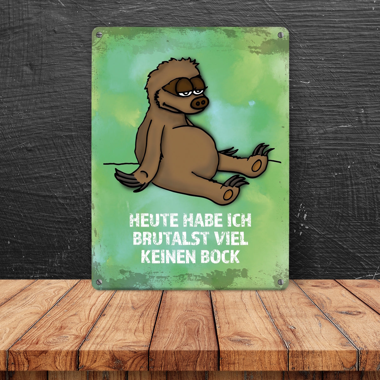 - 1x Metallschild mit Faultier Motiv und Spruch: ...brutalst viel keinen Bock! in der gewählten Größe