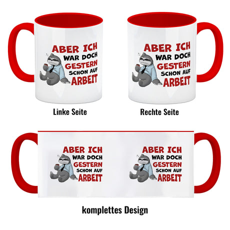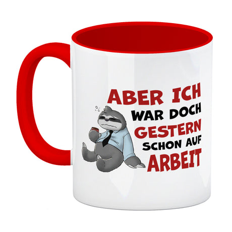 Aber ich war doch gestern schon auf Arbeit Faultier Kaffeebecher
