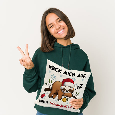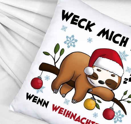 €8,95Grundpreis /Nicht verfügbarAuf LagerFaultier mit Zipfelmütze Kissen mit Spruch Wecken wenn Weihnachten ist