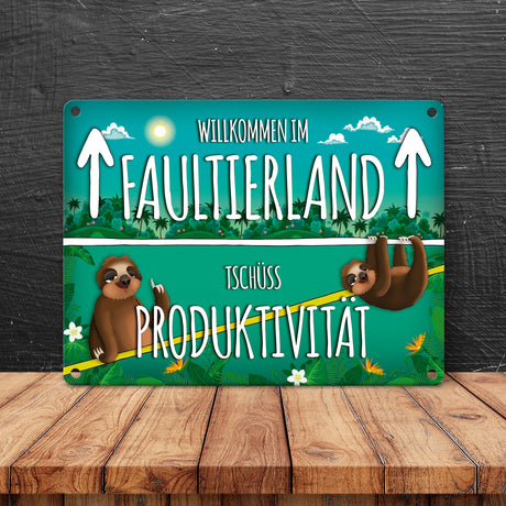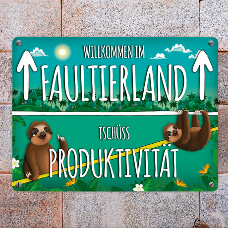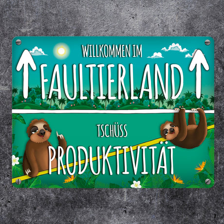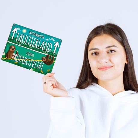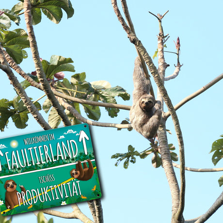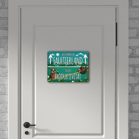 Ab €12,95Grundpreis /Nicht verfügbarAuf LagerMetallschild mit Faultier Motiv und Spruch: Willkommen im Faultierland - Tschüss ...