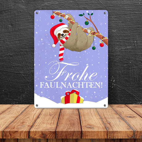 Ab €12,95Grundpreis /Nicht verfügbarAuf LagerFrohe Faulnachten Metallschild mit süßem weihnachtlichem Faultier
