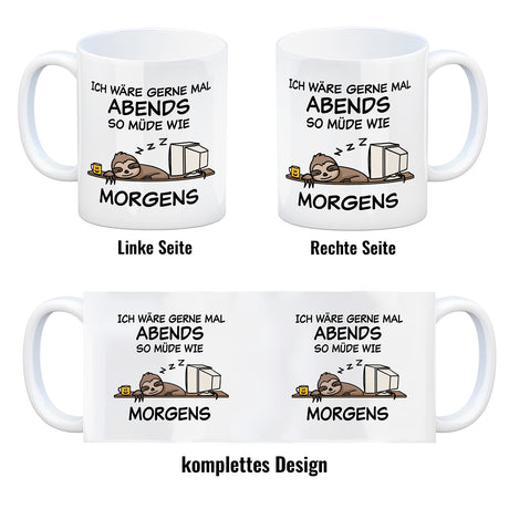 Ab €12,95Grundpreis /Nicht verfügbarAuf LagerIch wäre gerne abends so müde wie morgens Faultier Kaffeebecher