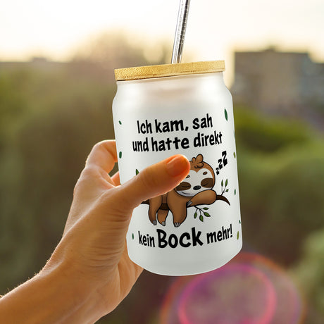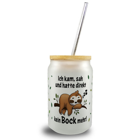 €12,95Grundpreis /Nicht verfügbarAuf LagerFaultier Trinkglas mit Bambusdeckel mit Spruch Ich kam sah und hatte direkt kein Bock mehr