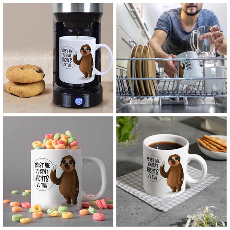 Ab €12,95Grundpreis /Nicht verfügbarAuf LagerKaffeebecher mit Faultier Motiv und Spruch: Es ist nie zu spät nichts zu tun