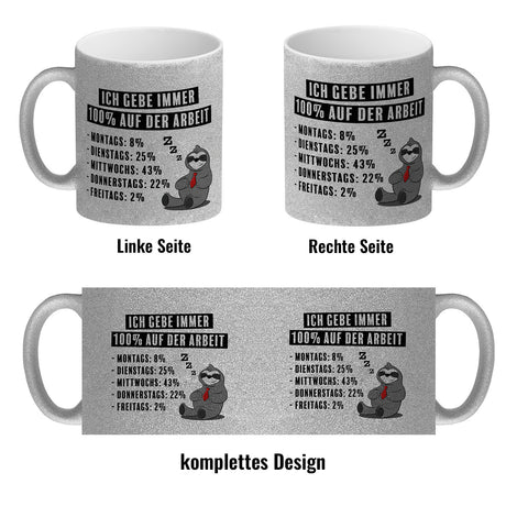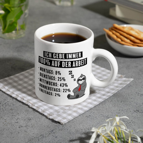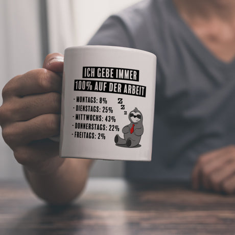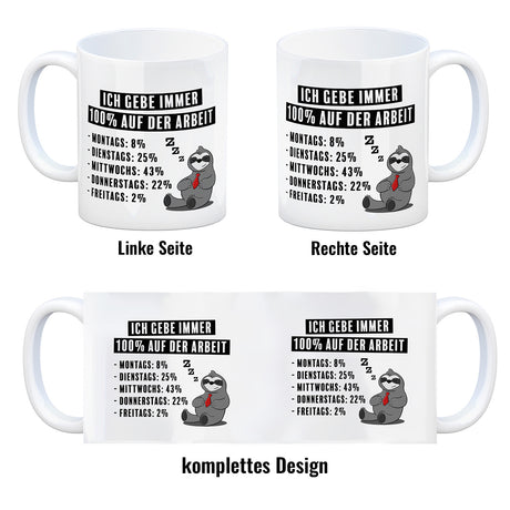 Ab €14,90Grundpreis /Nicht verfügbarAuf LagerIch gebe immer 100% auf der Arbeit Kaffeebecher mit schnarchendem Faultier
