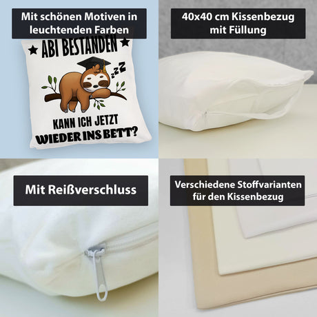 €8,95Grundpreis /Nicht verfügbarAuf LagerAbi bestanden Faultier Kissen mit Spruch zurück ins Bett
