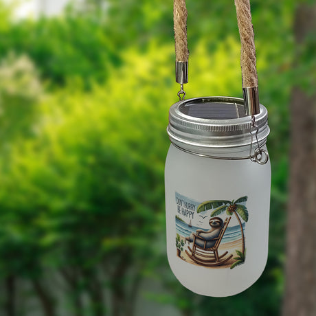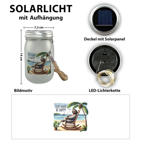 Faultier am Strand Solarlicht mit Spruch Don't hurry - be happy