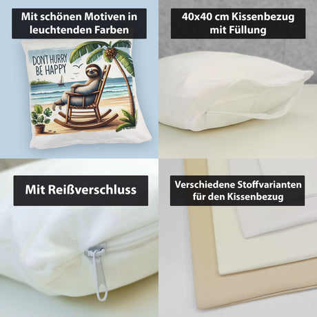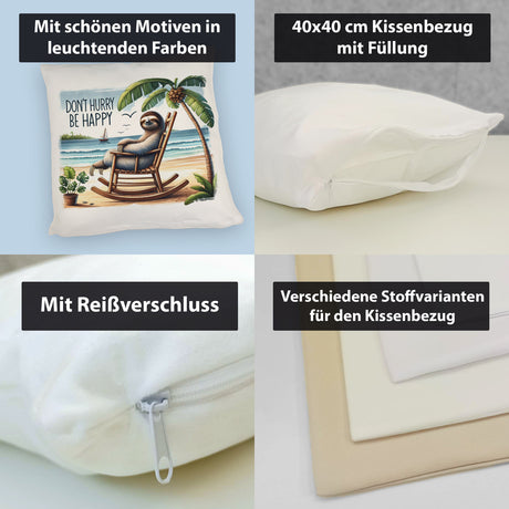 Ab €12,95Grundpreis /Nicht verfügbarAuf LagerFaultier am Strand Kissen mit Spruch Don't hurry - be happy