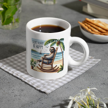 Ab €8,95Grundpreis /Nicht verfügbarAuf LagerFaultier am Strand Kaffeebecher mit Spruch Don't hurry - be happy