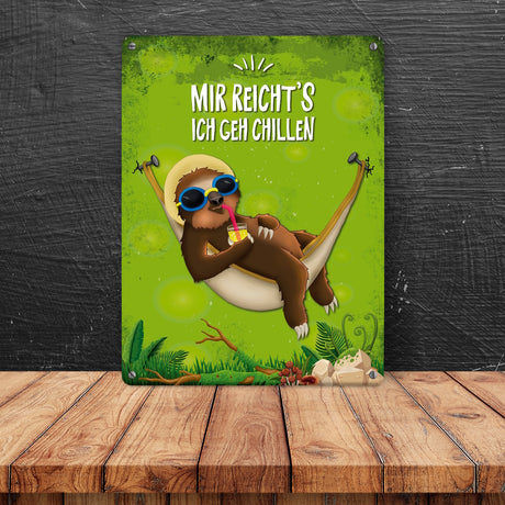 Ab €12,95Grundpreis /Nicht verfügbarAuf LagerMetallschild mit Faultier in Hängematte Motiv und Spruch: Mir reicht's ich geh chillen