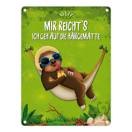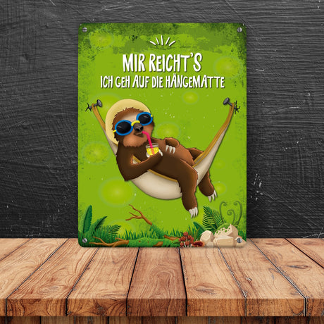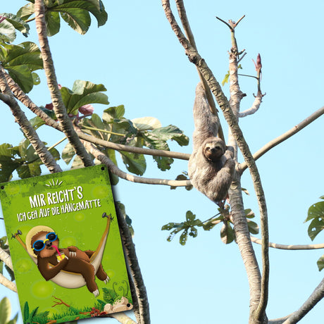 Ab €16,95Grundpreis /Nicht verfügbarAuf LagerMetallschild mit Faultier in Hängematte Motiv und Spruch: Mir reicht's ich geh auf die Hängematte