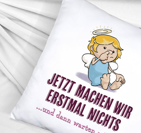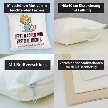 €9,95Grundpreis /Nicht verfügbarAuf LagerEngel Kissen mit Spruch - Wir machen nichts und warten ab