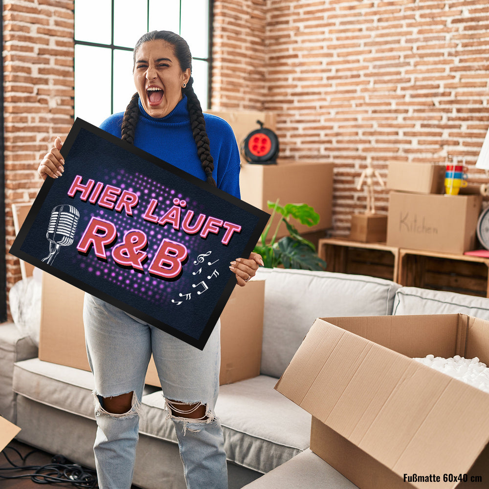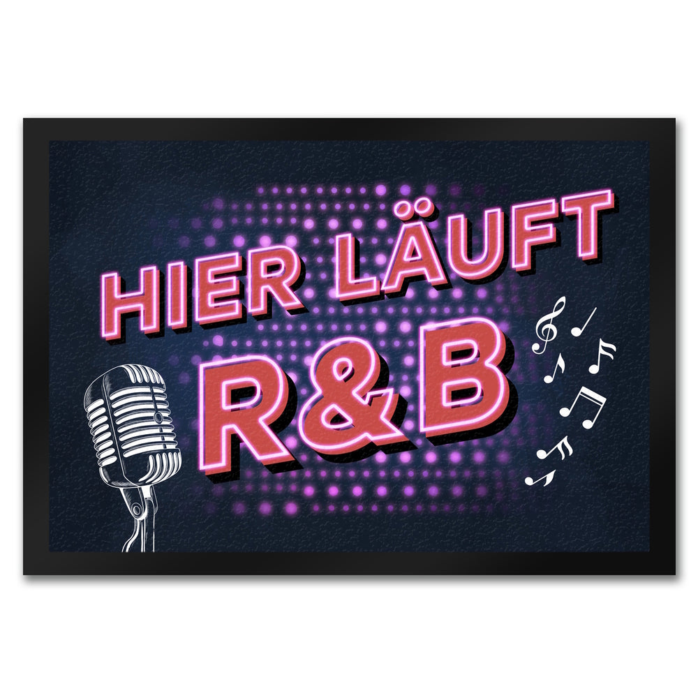 - 1x Hier läuft R&B Fußmatte mit Mikrofon und Noten im coolen Retro Look in der gewählten Größe