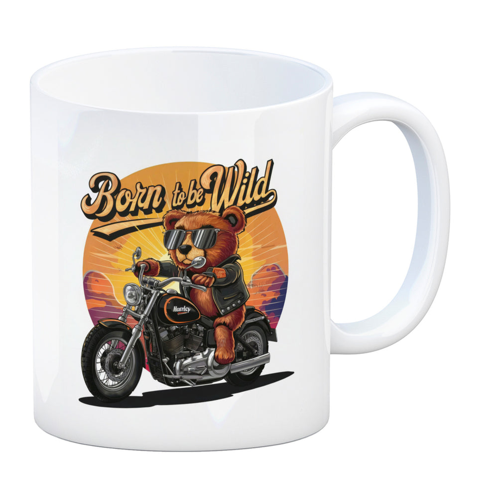 • 1x Bär auf Motorrad Kaffeebecher - Born to be Wild in der gewählten Ausführung