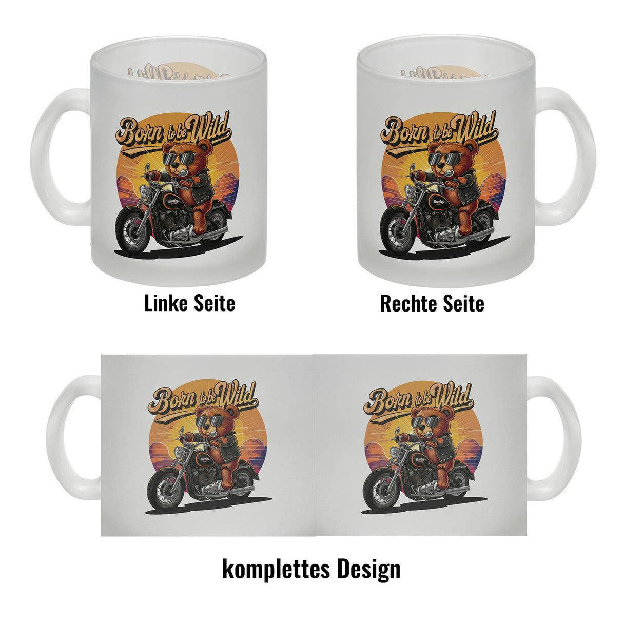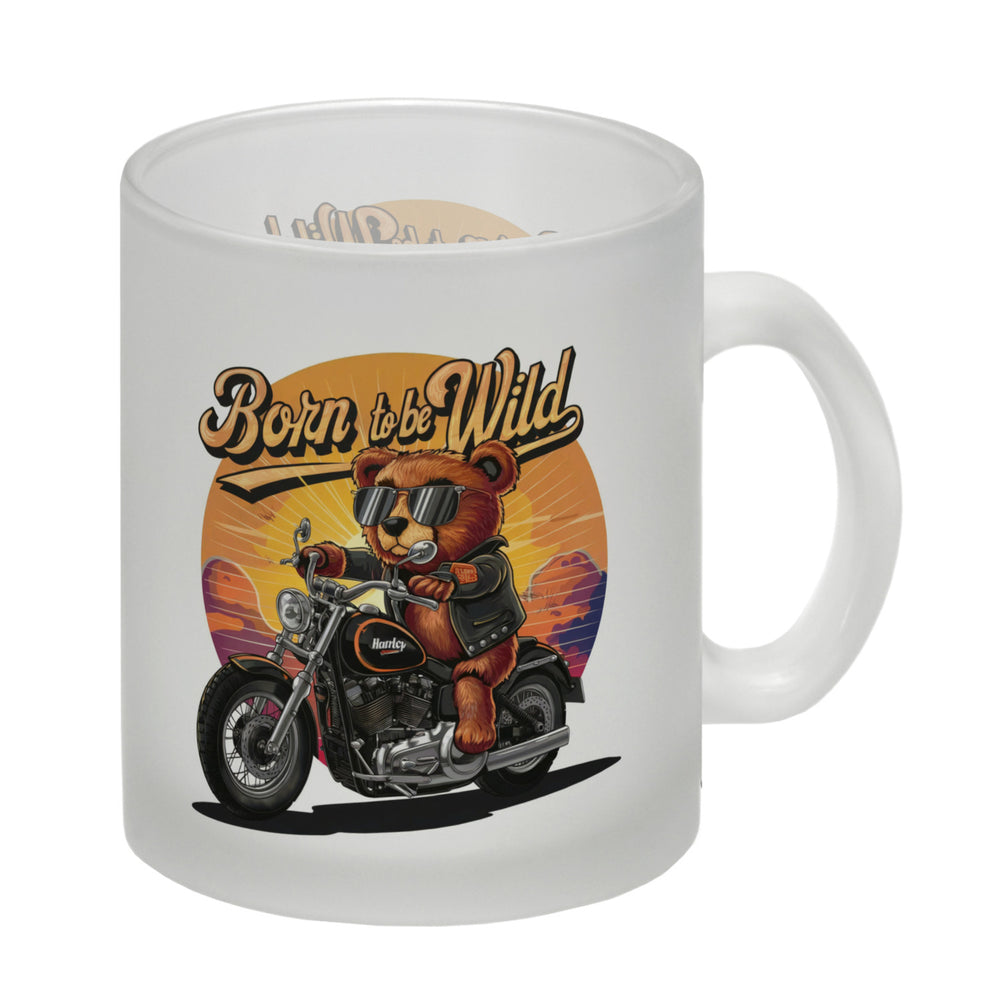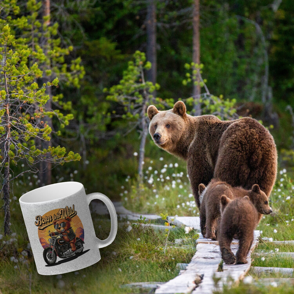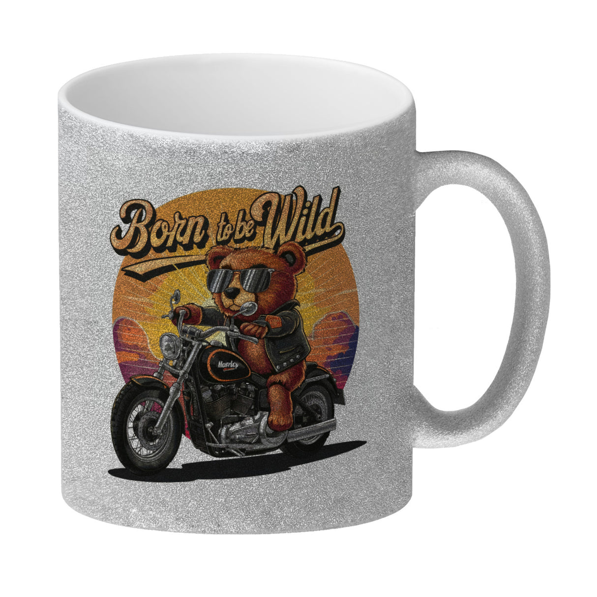 Willkommen zu deinem neuen Lieblings-Kaffeebecher! Mit unserem „Bär auf Motorrad Kaffeebecher - Born to be Wild“ startet dein Tag ab sofort mit einem knallharten Abenteuer. Der coole Bär in Sonnenbrille und Lederjacke, der gelassen in den Sonnenuntergang fährt, sorgt dafür, dass dir schon beim Frühstück ein anerkennendes Lächeln über die Lippen huscht.Dieser Kaffeebecher punktet nicht nur mit Style, sondern auch mit Vielseitigkeit: Wähle zwischen der klassischen weißen Tasse, dem farbig akzentuierten Modell, der edlen Glastasse oder dem exklusiven Silberbecher mit Glitzereffekt. Jede Variante wird sorgfältig in unserer deutschen Tassen-Manufaktur bedruckt. Für alle Bärenfans, Motorradfreunde und Freiheitssuchenden, die ihren Alltag mit einer Extraportion Humor beginnen wollen, ist dieser Becher ein absolutes Muss. Auch als Bürobecher wirst du damit zum Highlight für deine Kollegen, denn der Spruch „Born to be Wild“ macht klar: Hier kommt kein Langweiler, sondern jemand, der das Leben in vollen Zügen genießt.Und das Beste: Dieser Kaffeebecher ist ein großartiges Geschenk für jeden Anlass. Ob Geburtstag, Weihnachten oder einfach nur so – er bringt ein Lächeln in jedes Gesicht und verleiht jedem Tag eine Portion Wildheit und Lebensfreude. Also, worauf wartest du? Schenk ein bisschen „Born to be Wild“-Spirit!