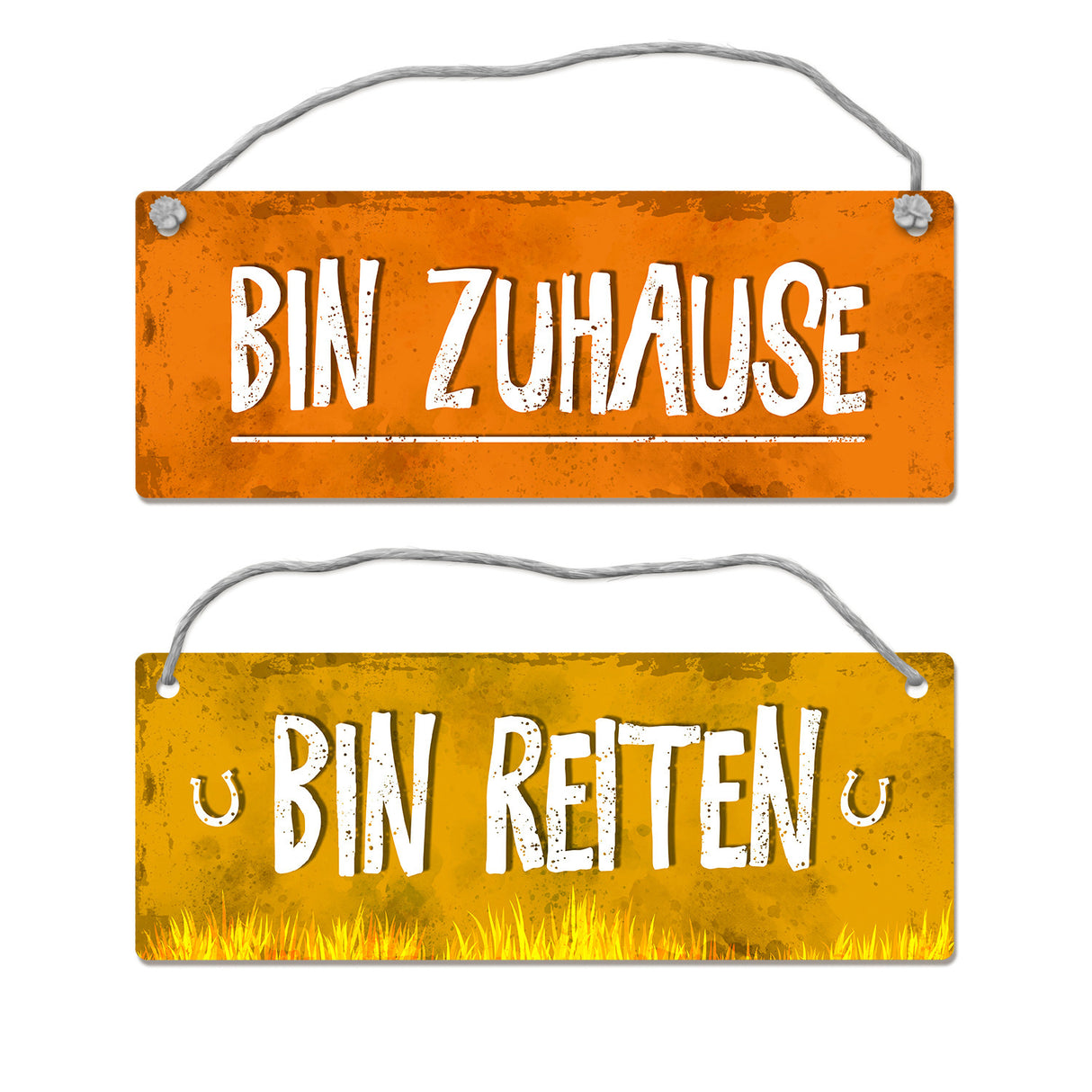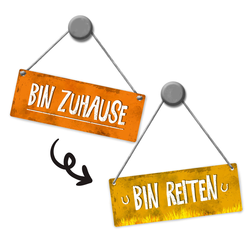 - Lieferumfang: 1x Bin reiten - Bin Zuhause Wendeschild mit Kordel Wendeschild