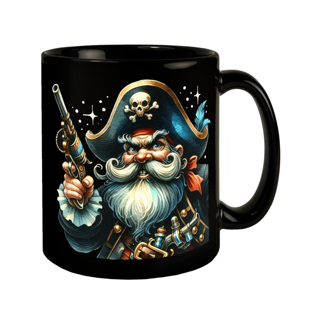 - Ahoi Koffein-Kameraden! Diese "böser Pirat Tasse in Schwarz" lässt uns Landratten morgens über die Planken des Alltags spazieren. Vor euch steht kein gewöhnlicher Becher, sondern ein humorvolles Gefäß voller Seefahrer-Charme. Der böse Pirat mit Augenklappe, gekreuzten Knochen und Schwert lädt zum schmunzelnden Schlürfen ein!