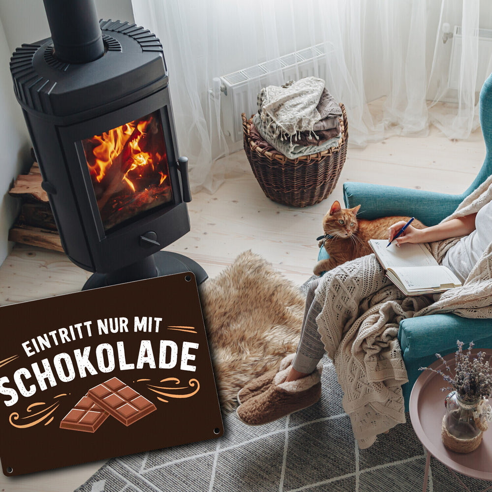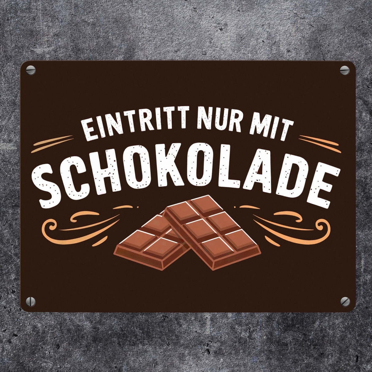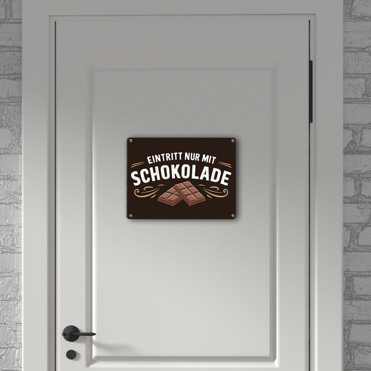 EINTRITT NUR MIT SCHOKOLADE Metallschild in 15x20 cm für Schokoladenfans - 15x20 cm ist auf Lager und wird versandt, sobald es wieder verfügbar ist