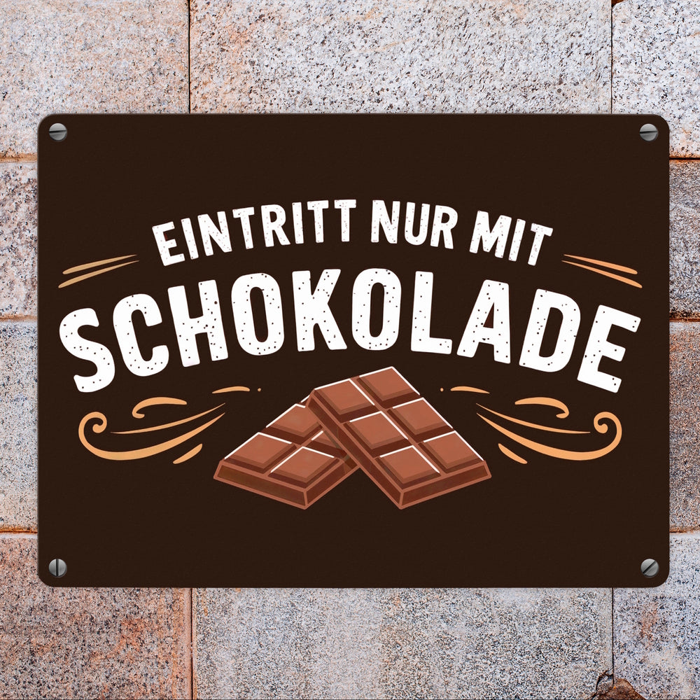 - 1x EINTRITT NUR MIT SCHOKOLADE Metallschild in 15x20 cm für Schokoladenfans in der gewählten Größe