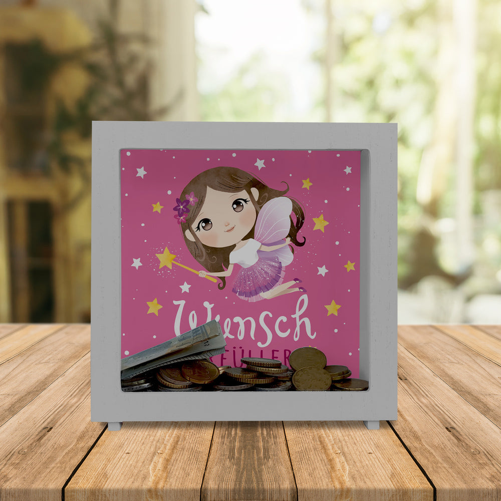 - Schluss mit langweiligen Sparschweinen! Die "Fee Spardose Wunscherfüller" ist die charmante Geldwächterin für kleine Prinzessinnen. Mit Flügeln und Zauberstab bewacht sie jede Münze wie einen Schatz aus der Märchenwelt. Diese niedliche Fee bringt Magie ins Taschengeld-Sparen!