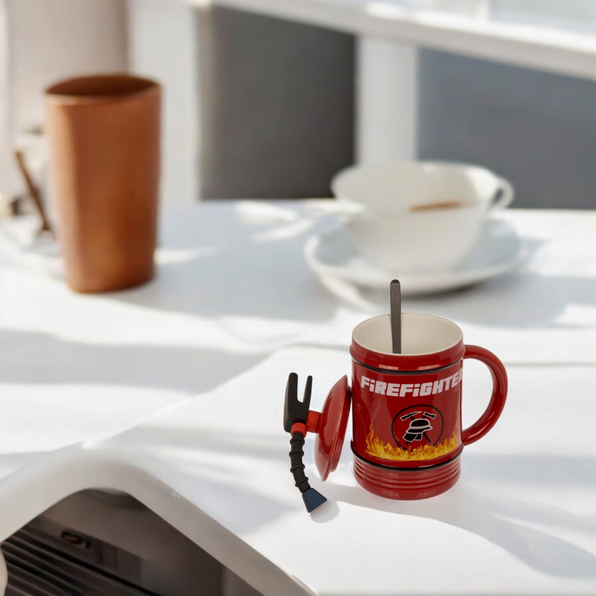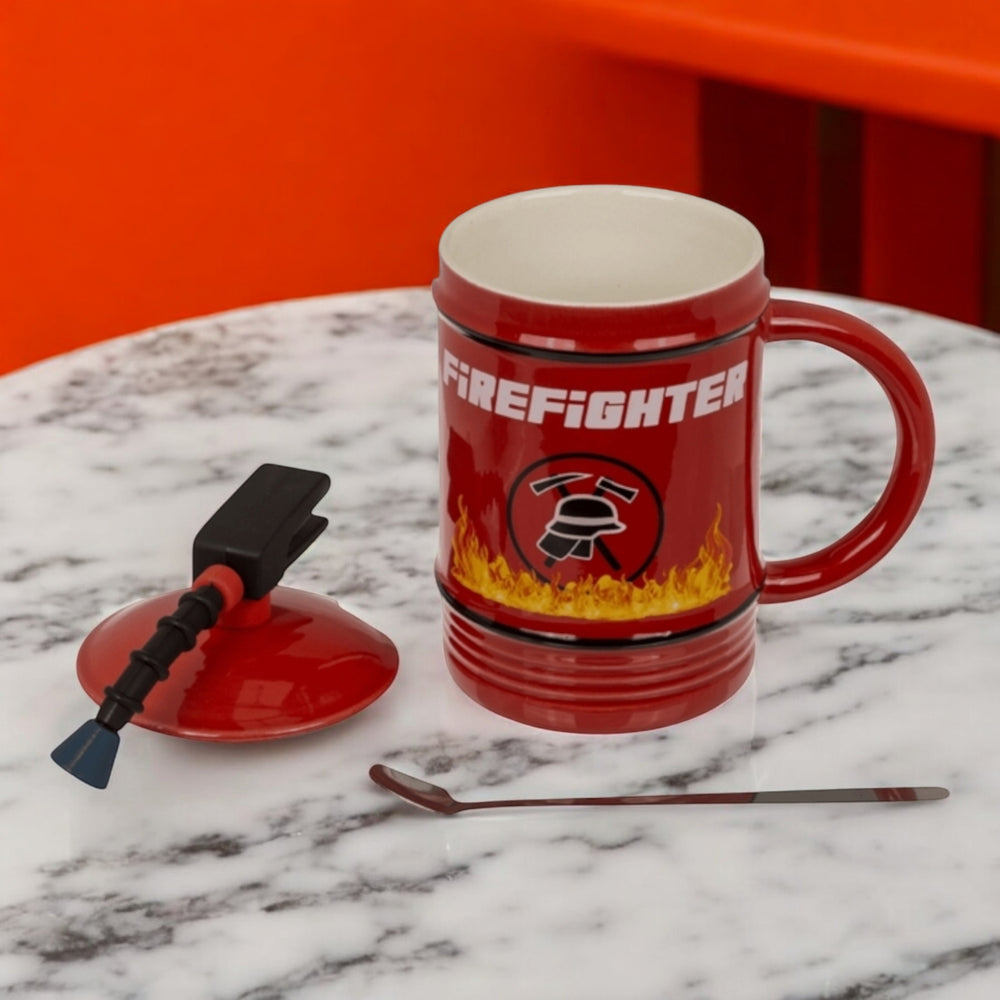 - Jeder kennt einen Feuerwehrmann, der seinen Kaffee heiß wie Flammen liebt. Diese Feuerwehr Tasse mit Deckel und Löffel ist das perfekte Geschenk, um ihnen den Morgen zu retten! Ideal für alle, die ihren Kaffee genauso ernst nehmen wie den nächsten Einsatz.