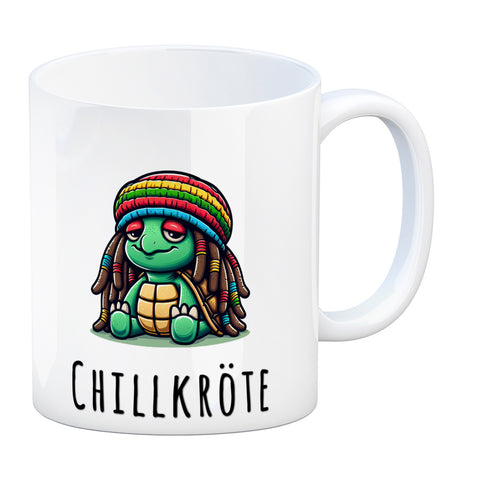 Schildkröte Rastafari Kaffeebecher mit Spruch Chillkröte