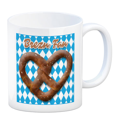 Brezelherz Bayernflagge Kaffeebecher mit Spruch Brezn Fan
