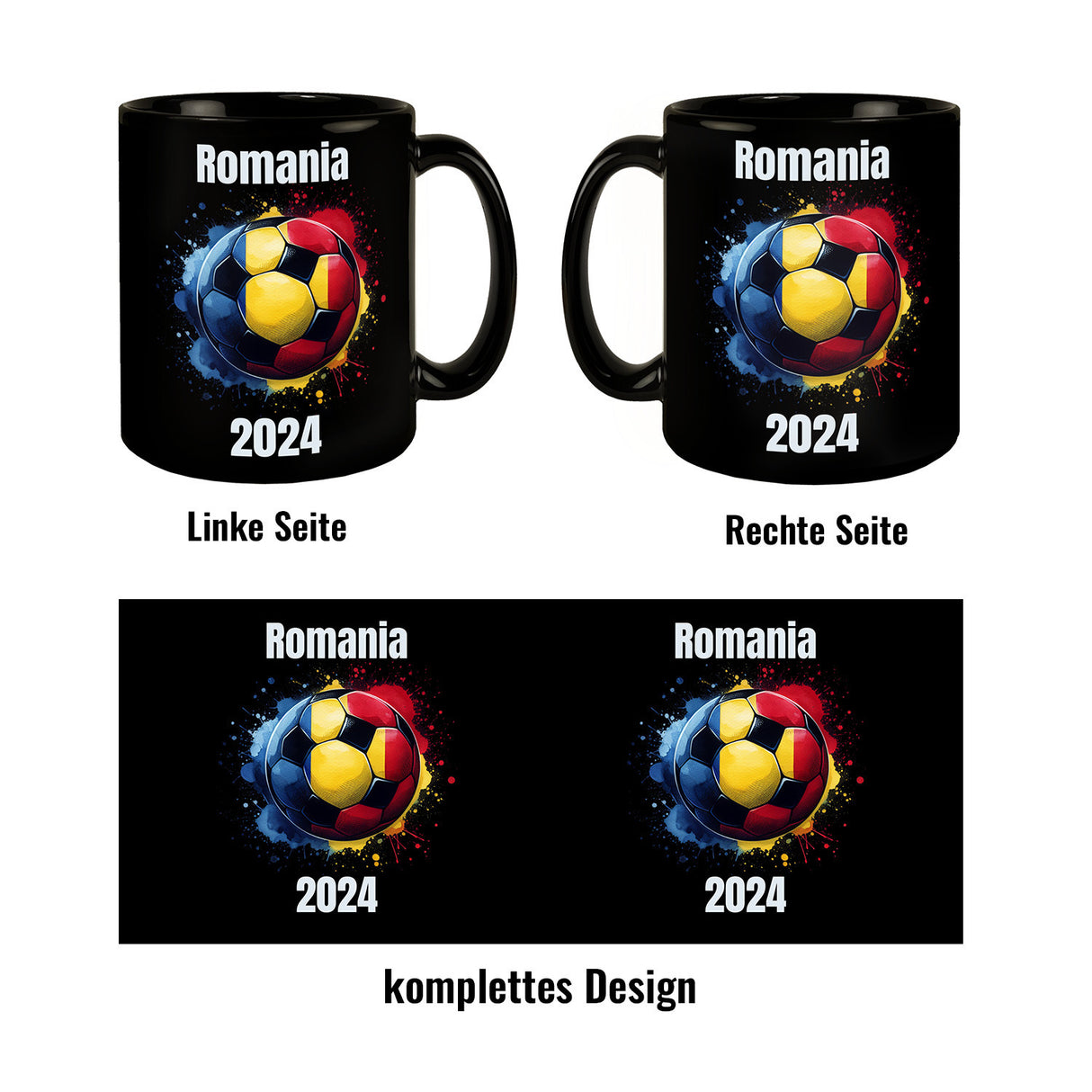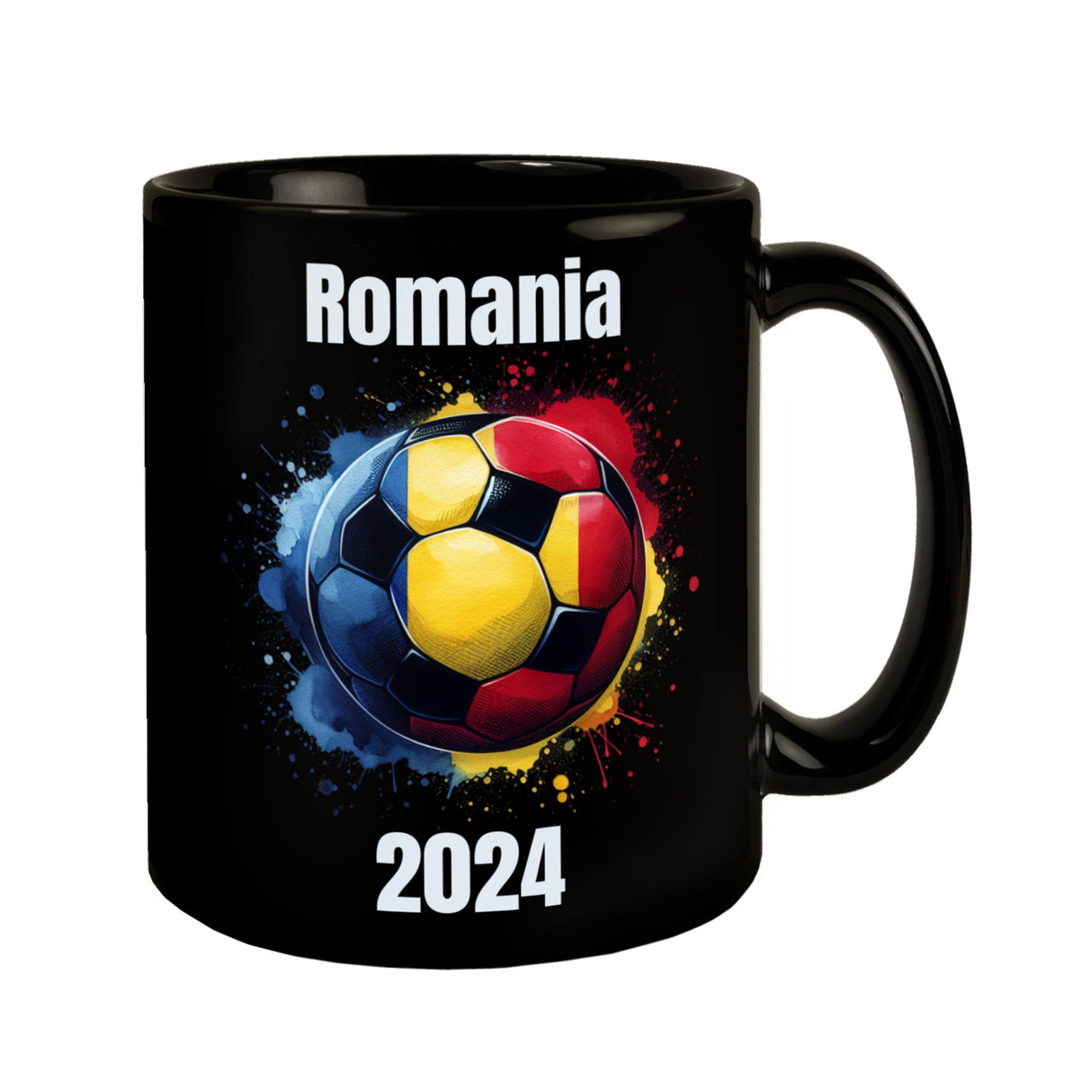 - Sei der Star am Kaffeeklatsch, mit der Fußball Rumänien Flagge Tasse! Das schwarze Schmuckstück schmückt sich mit einem Ball in Rot-Gelb-Blau, bereit, die EM 2024 zu erobern. Mehr Rumänien-Begeisterung in einer Tasse? Unmöglich!
