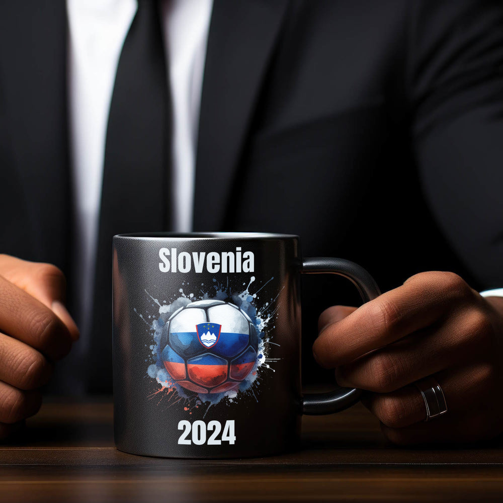• Wach auf und riech den Fußballgeist mit der "Fußball Slowenien Flagge Tasse" in stylishem Schwarz! Jeden Morgen ein High-Five von deiner Lieblingsmannschaft – schwing den Becher und zeig Farbe mit Ball und Flagge, als Vorspiel für die EM 2024.