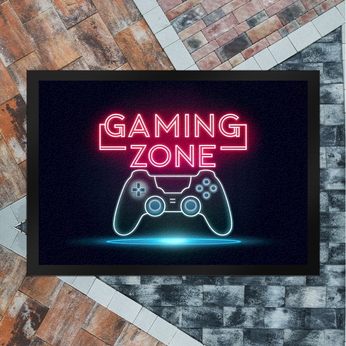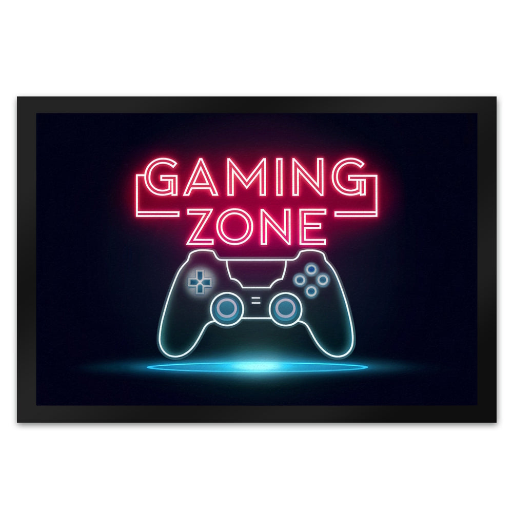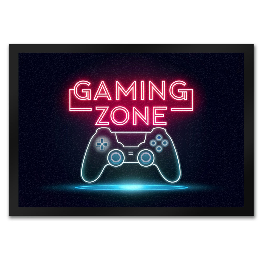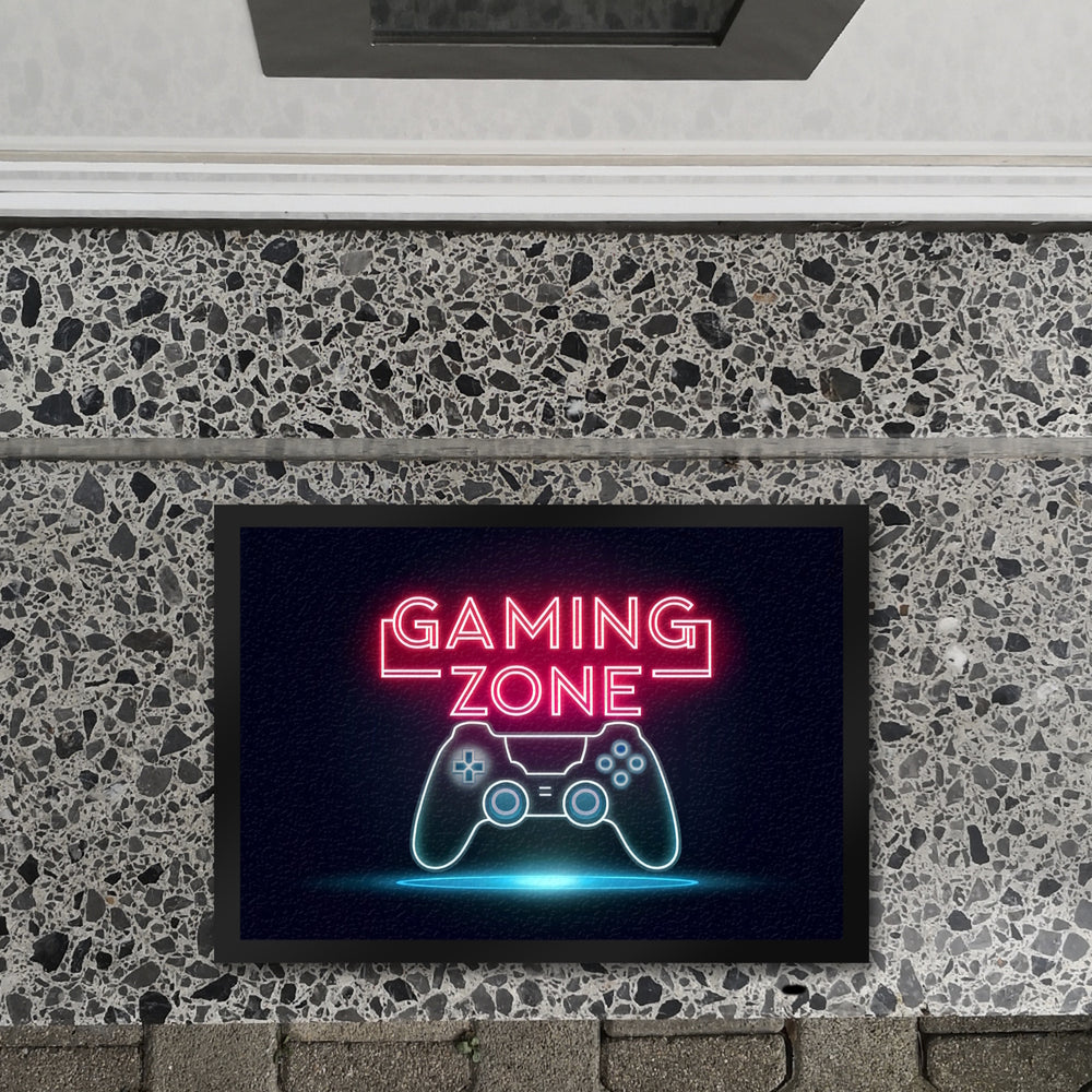 - Willkommen in der GAMING ZONE! Diese Fußmatte begrüßt dich mit einem leuchtenden "GAMING ZONE" Schriftzug und ist ein Muss für alle Gamer.
