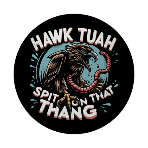 Hawk Tuah Falke mit Regenwurm Magnet rund mit Spruch Spit on that thang