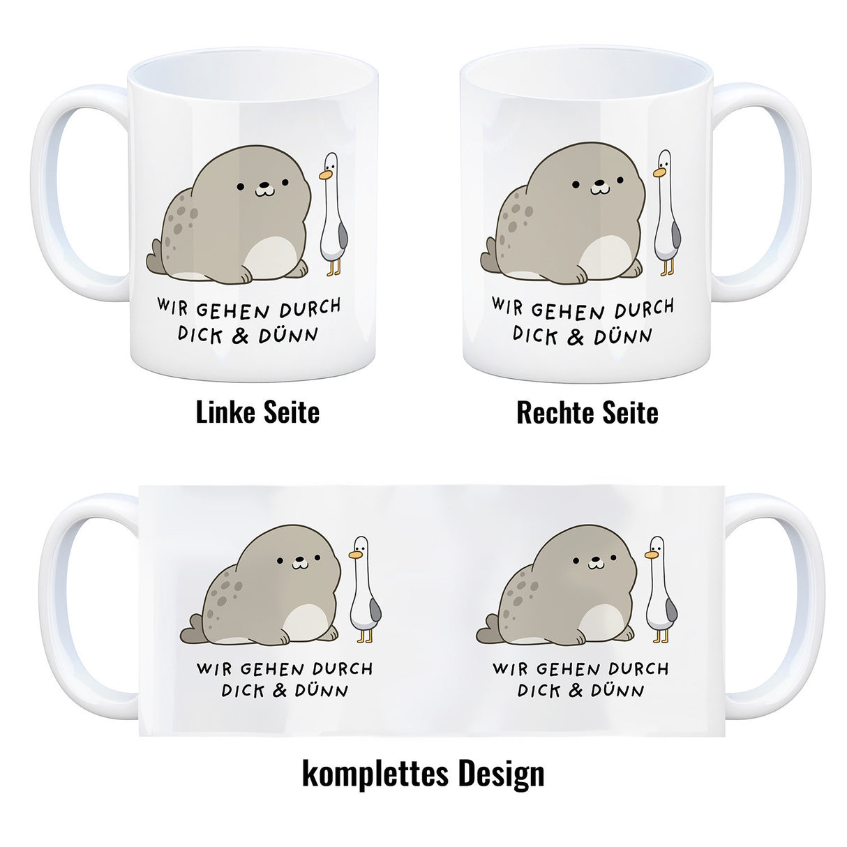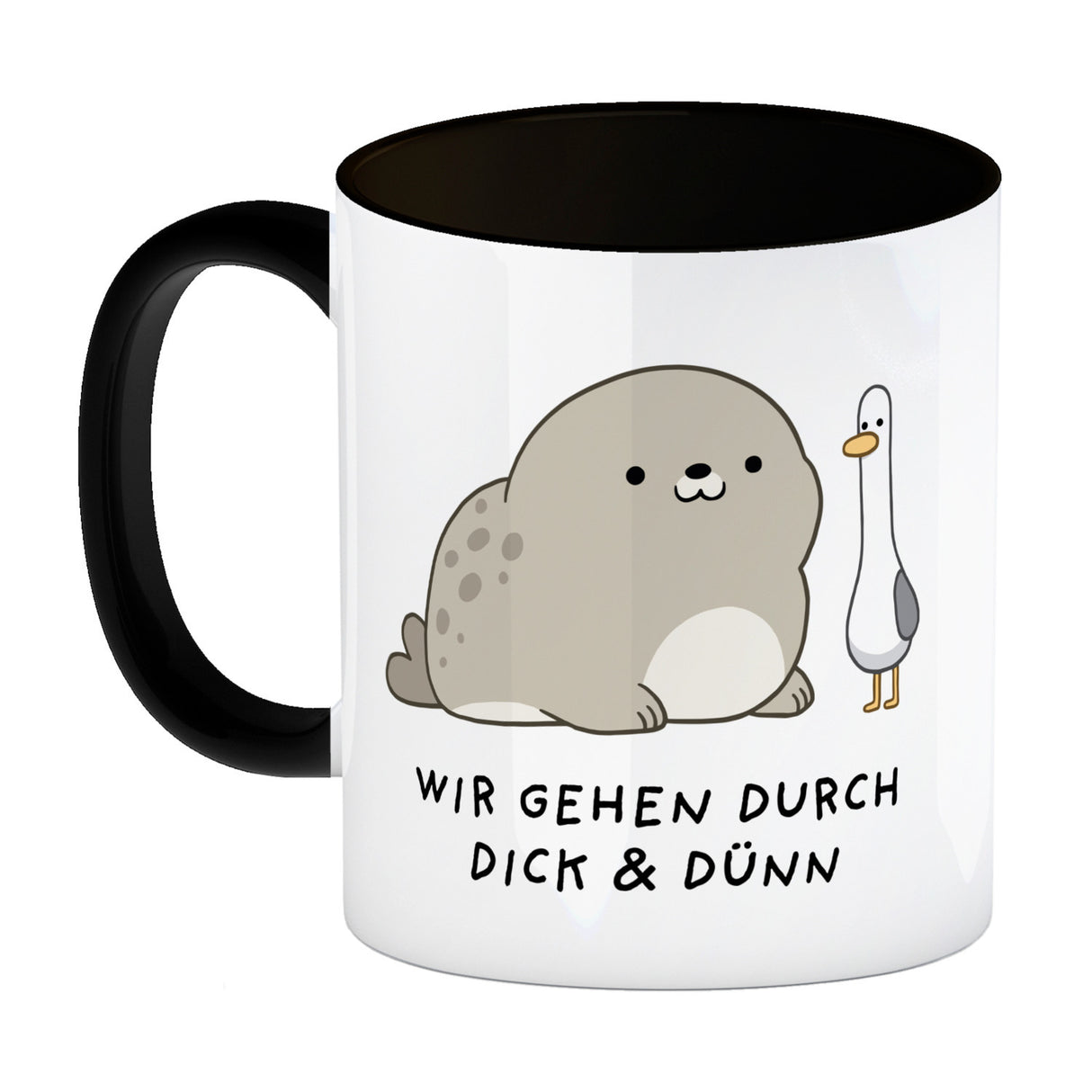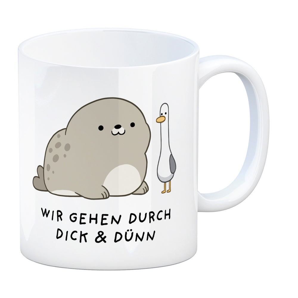• Suchst du das perfekte Geschenk für die Freundin, die immer für dich da ist? Überrasche sie mit dieser Tasse, die sagt: "Hey, du bist die Robbe zu meiner Möwe!" Gemeinsam lachen garantiert – für alle, die gemeinsam durch dick dünn gehen.