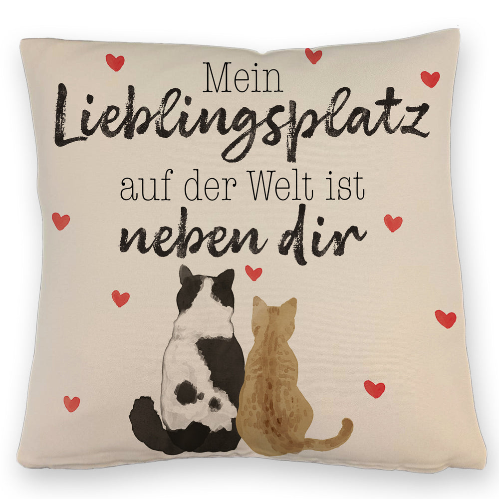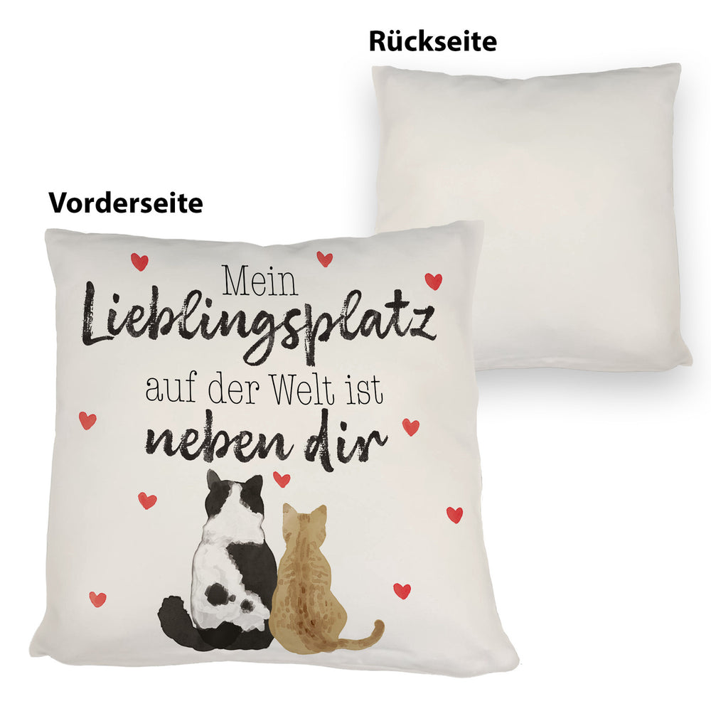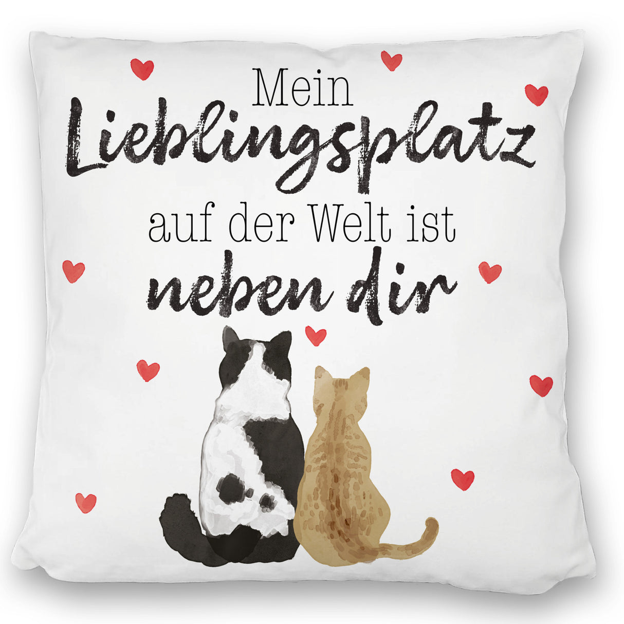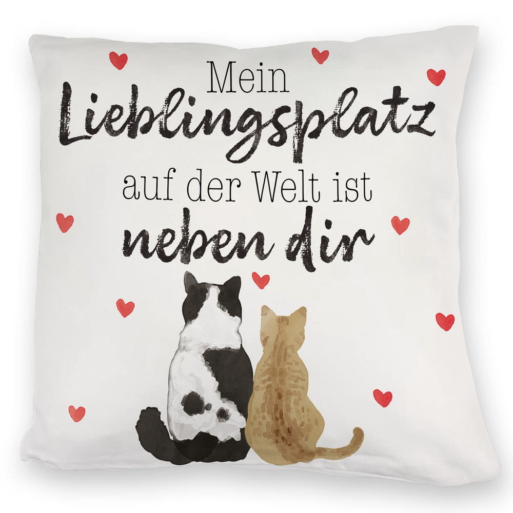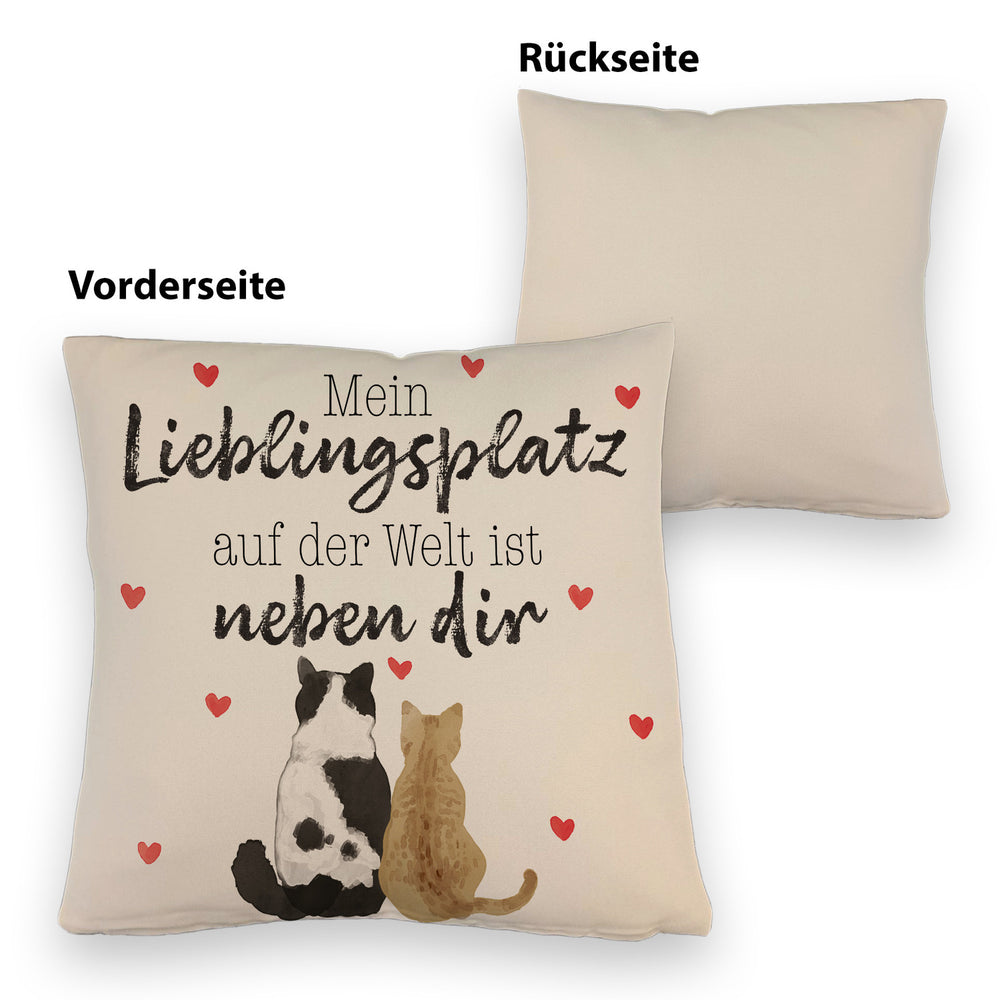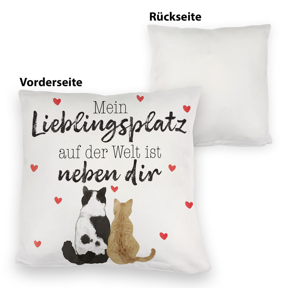 Katzenpaar Kissen mit Spruch Mein Lieblingsplatz ist bei dir