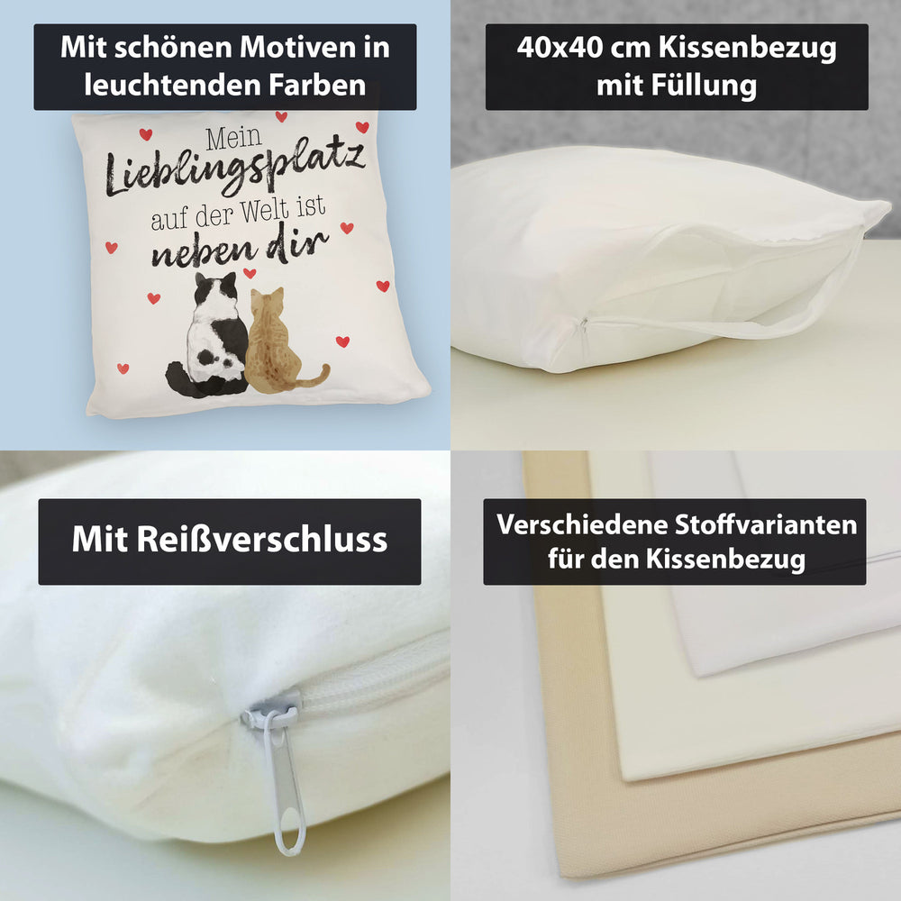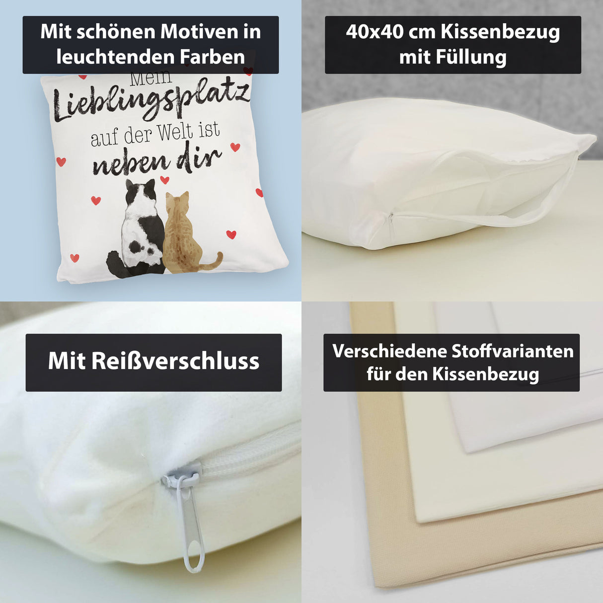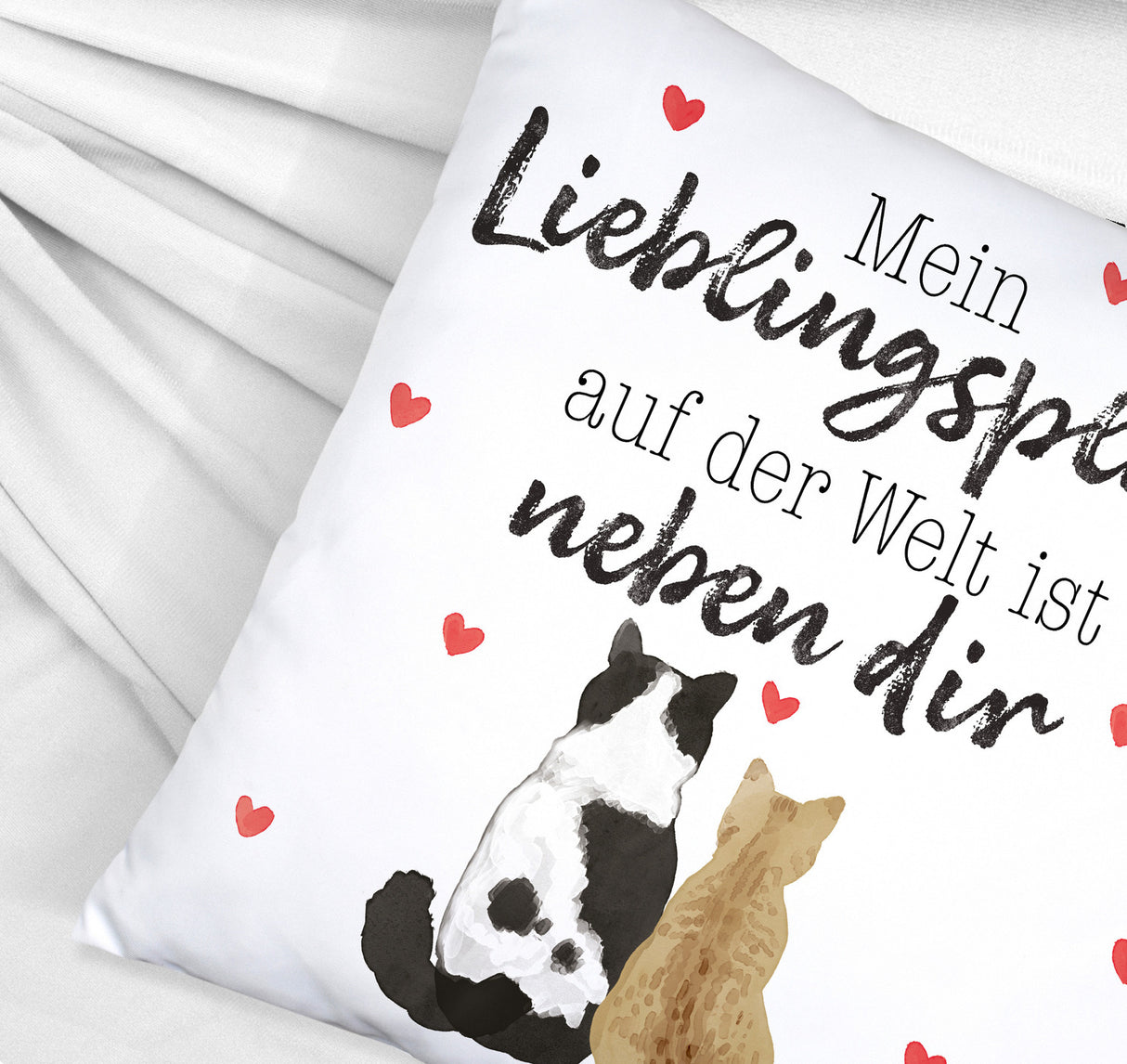- 1x Katzenpaar Kissen mit Spruch Mein Lieblingsplatz ist bei dir in der gewählten Ausführung