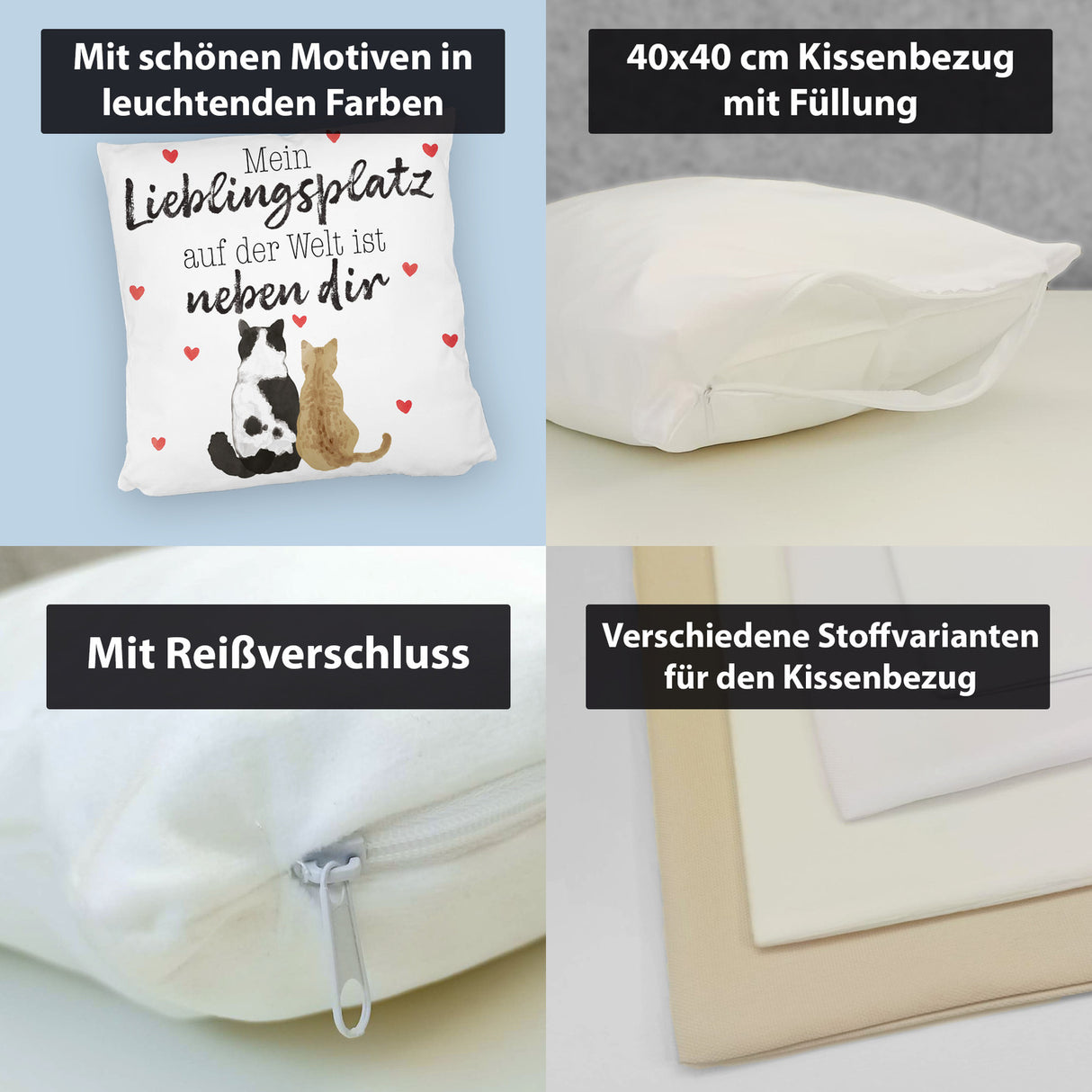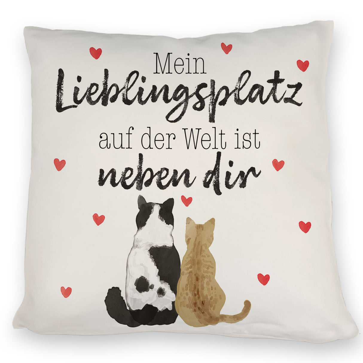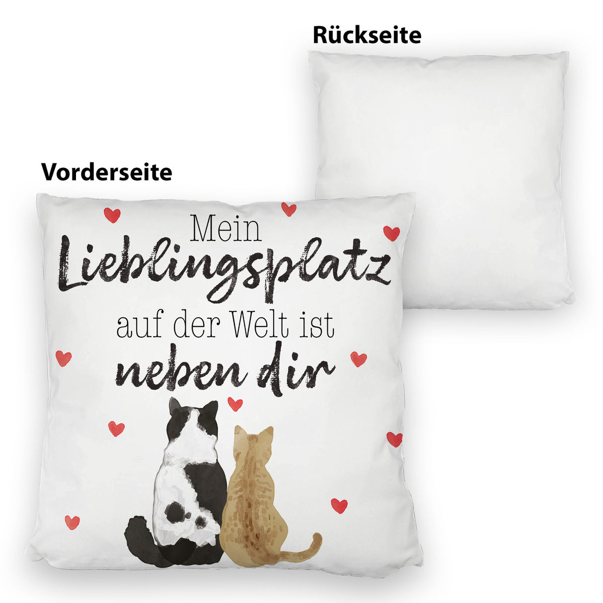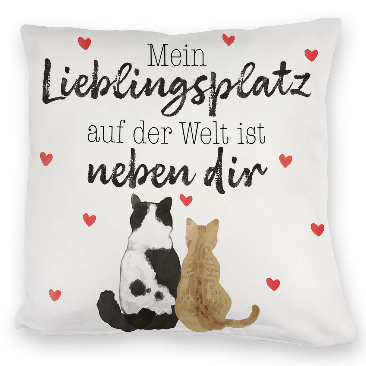 - Schnurrende Romantik fürs Sofa! Unser "Katzenpaar Kissen mit Spruch" ist der Traum jedes Katzenmenschen. Zwei verliebte Samtpfoten umringt von Herzen plus der süße Spruch "Mein Lieblingsplatz ist bei dir" - ein Kuschelmanifest der Katzenliebe!