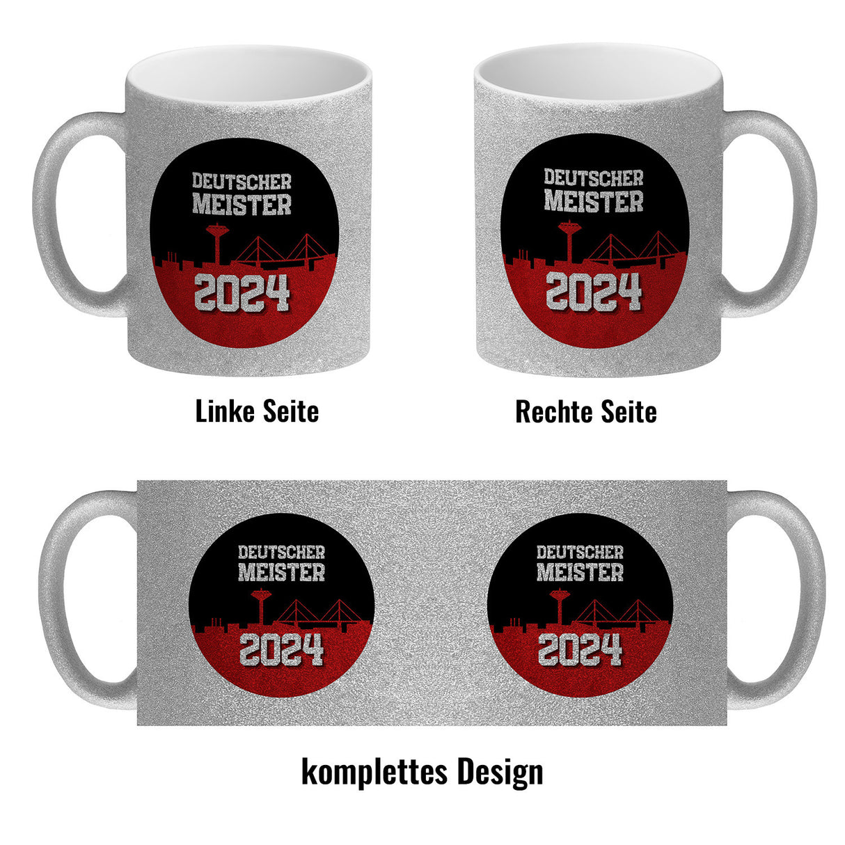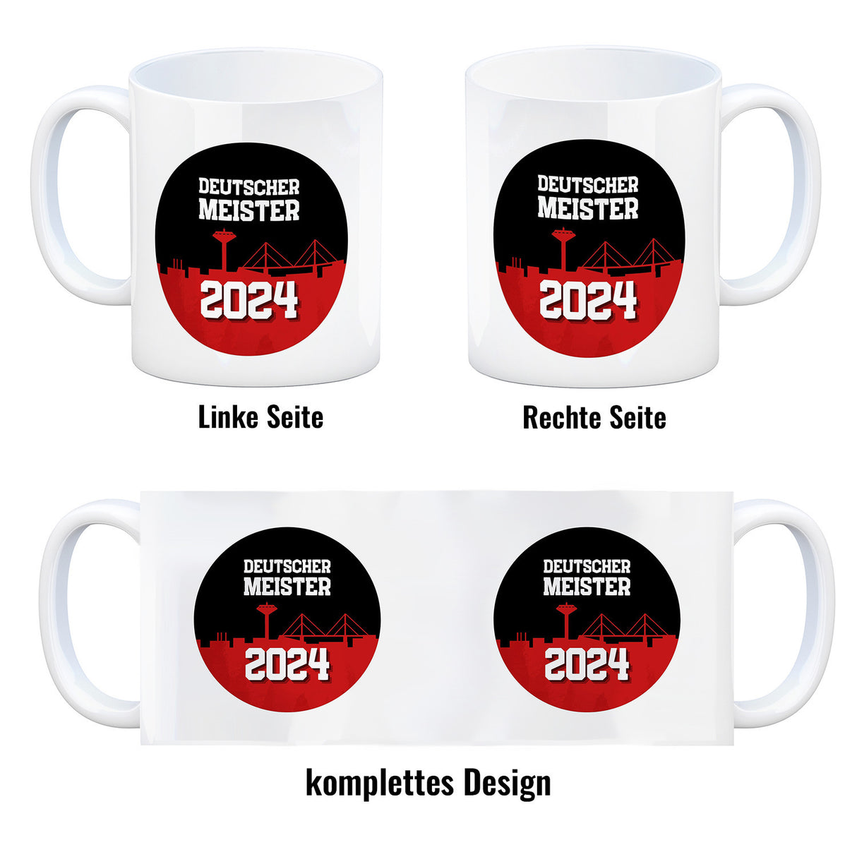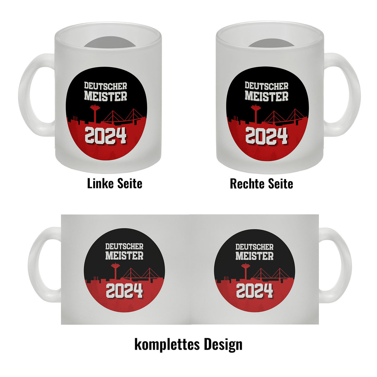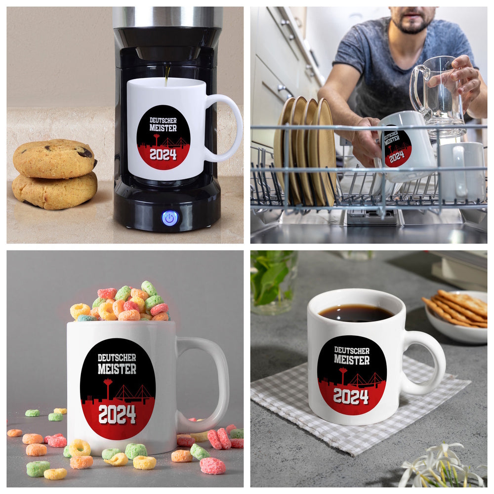 • 1x Leverkusen Kaffeebecher mit Spruch Deutscher Meister 2024 in der gewählten Ausführung