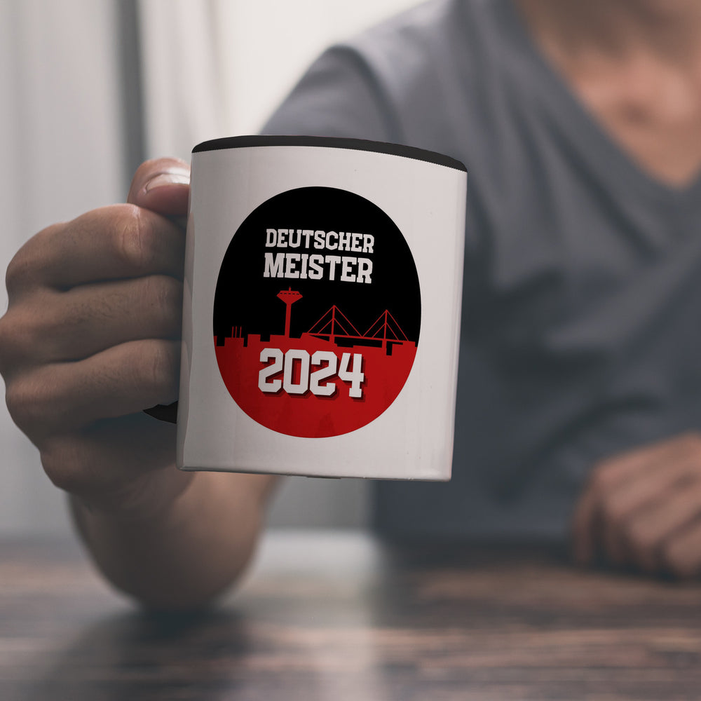 Leverkusen Meisterschale Tasse in Schwarz mit Spruch Deutscher Meister 2024