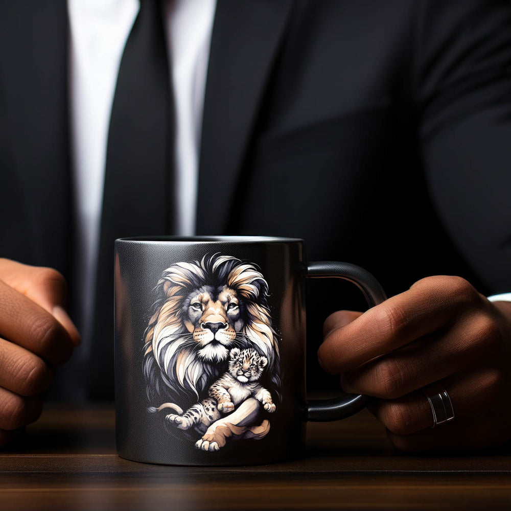 - Brüllen vor Freude statt vor Angst! Unsere "Löwe mit Babylöwen Tasse in Schwarz" zeigt, wie das mächtige Raubtier liebevoll sein Jungtier umsorgt. Weiches Fell, sanfte Pflege – und das alles in sicherer Umarmung. Ideal für Tierfreunde, die ihren Morgenkaffee mit einer Prise Vaterliebe genießen möchten!