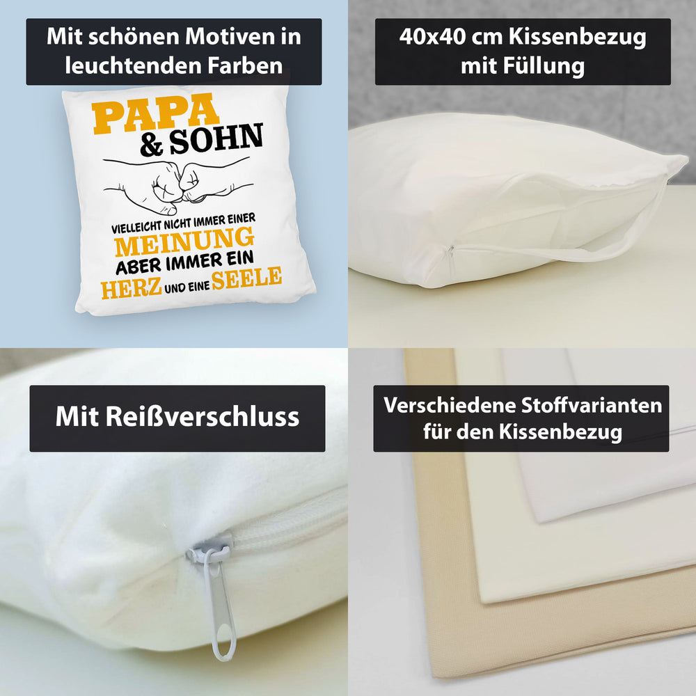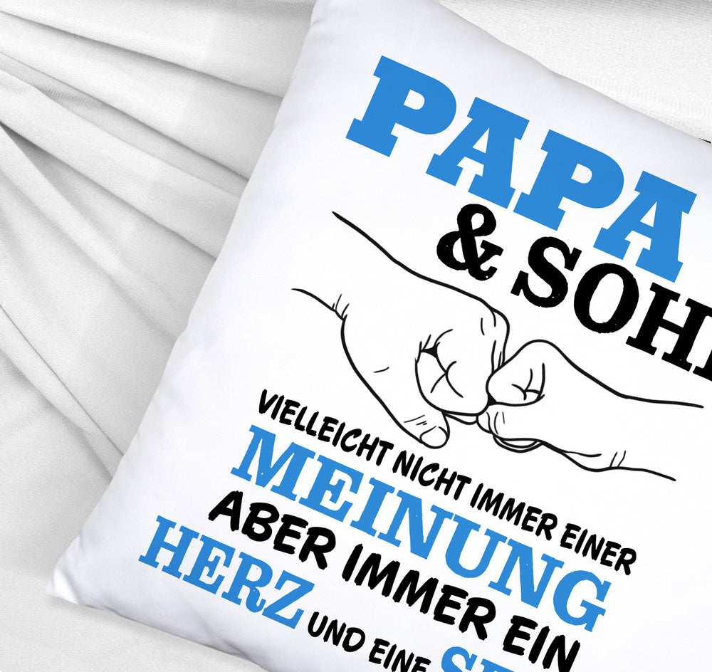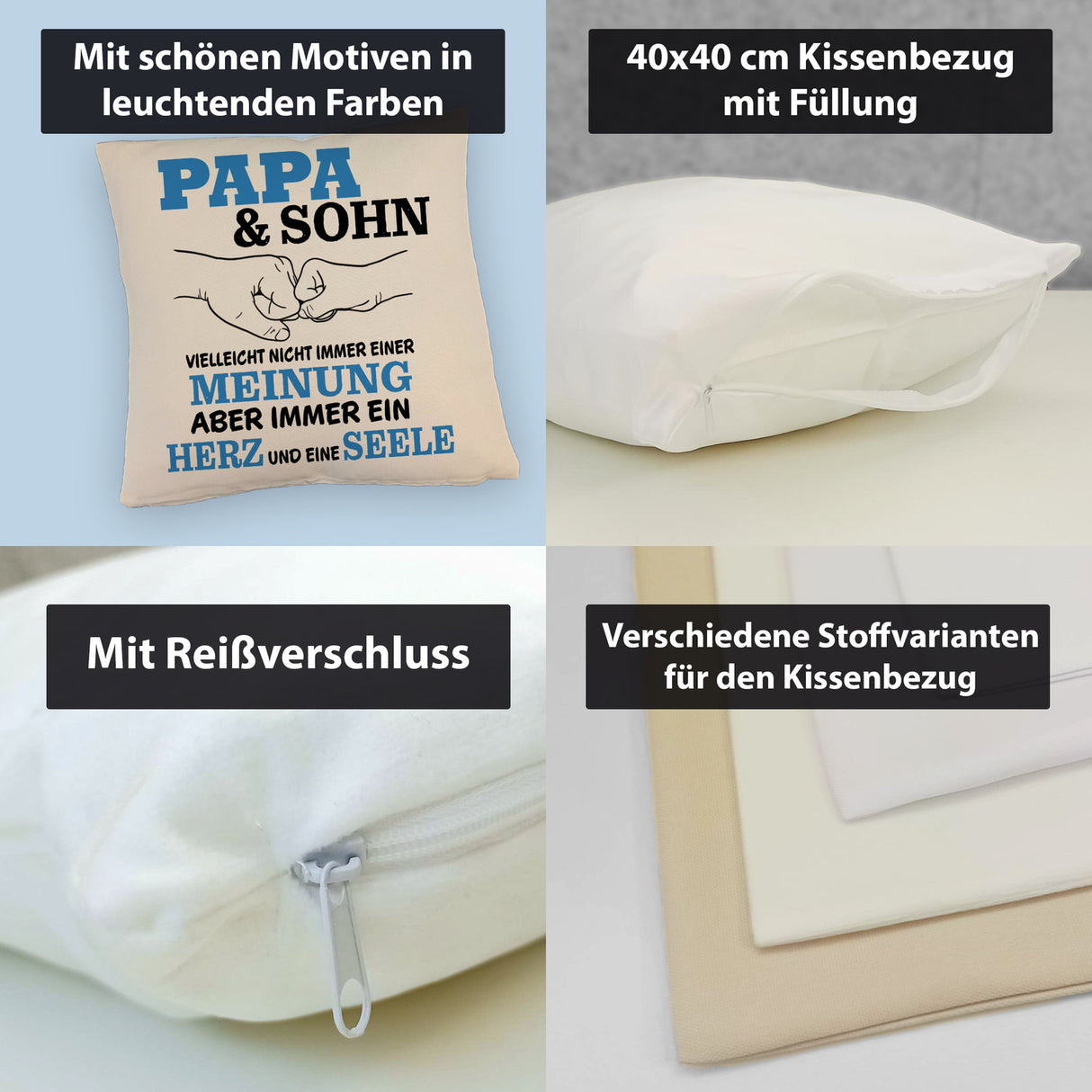 - 1x Papa & Sohn Kissen mit Spruch Ein Herz und eine Seele in der gewählten Ausführung