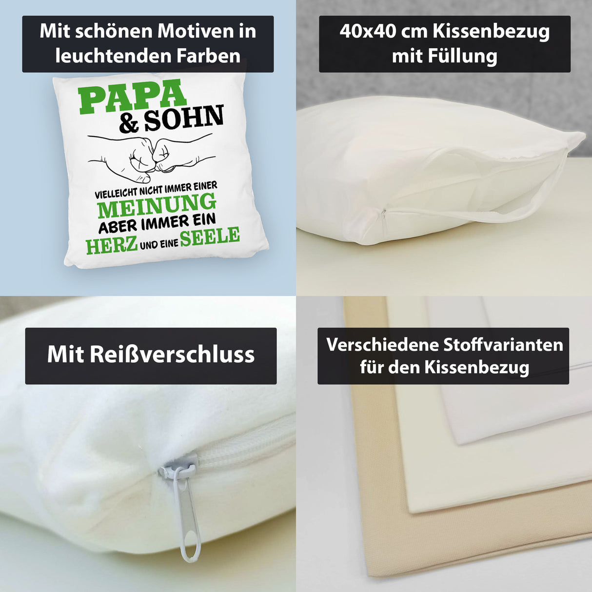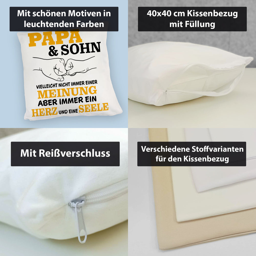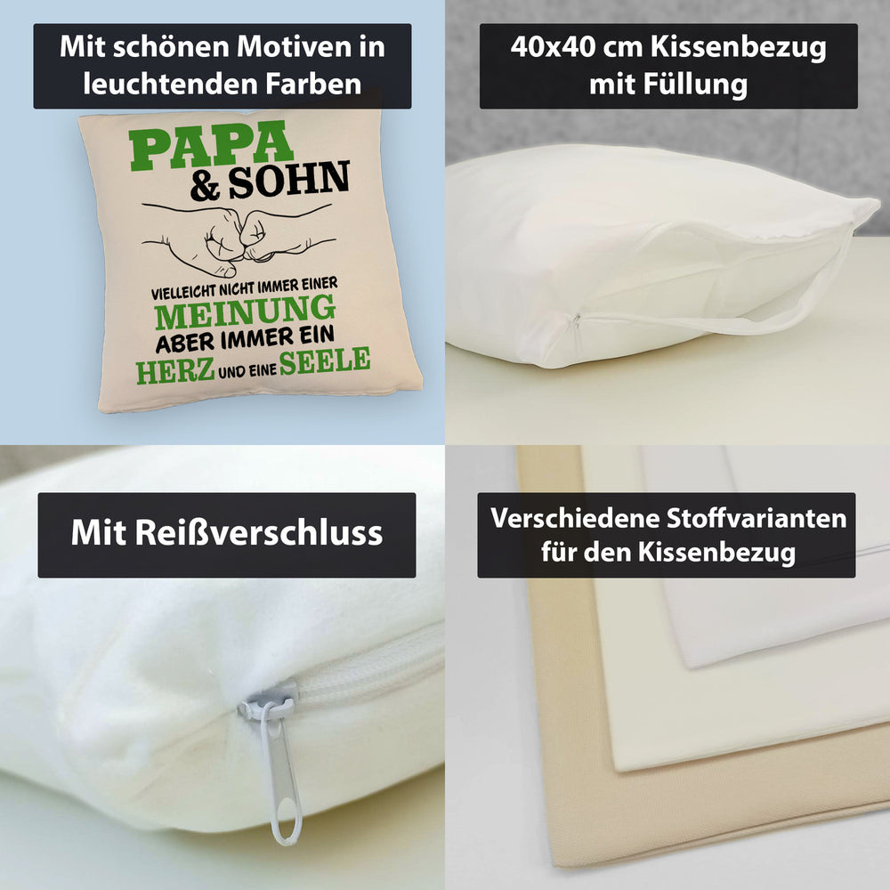 - 1x Papa & Sohn Kissen mit Spruch Ein Herz und eine Seele in der gewählten Ausführung
