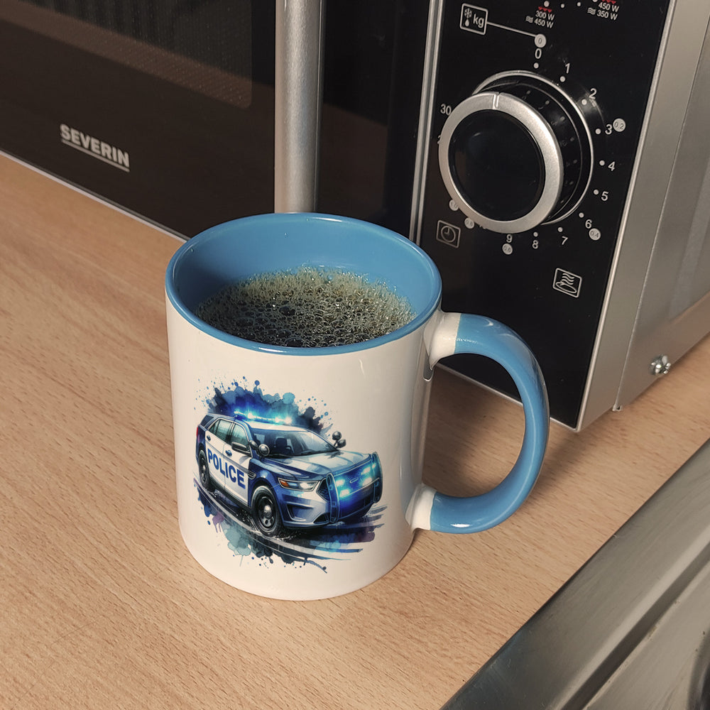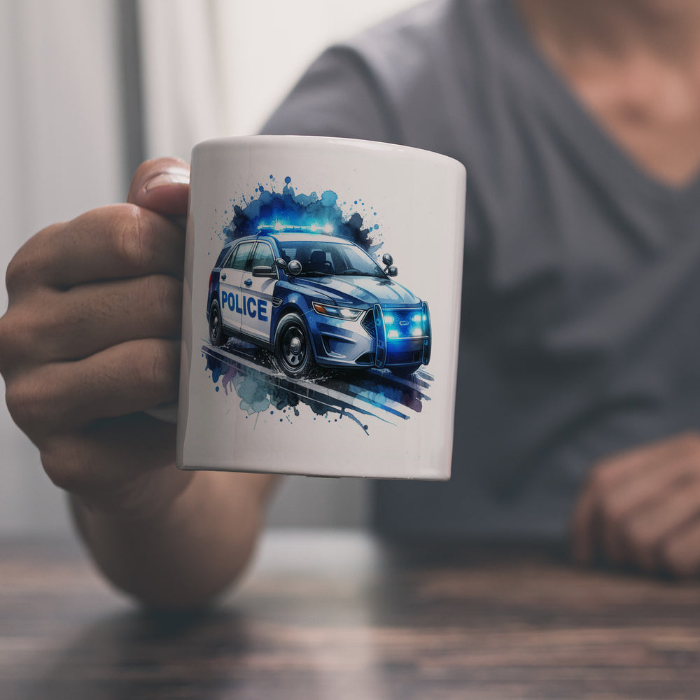 - Alarmstufe Kaffee! Mit dem "Polizeiauto im Einsatz Kaffeebecher" wird jede Kaffeepause zum spannenden Einsatz. Hol dir die Action direkt auf den Schreibtisch mit diesem Streifenwagen Design und eingeschaltetem Blaulicht Motiv – der Wachmacher für alle Schlafmützen im Dienst!