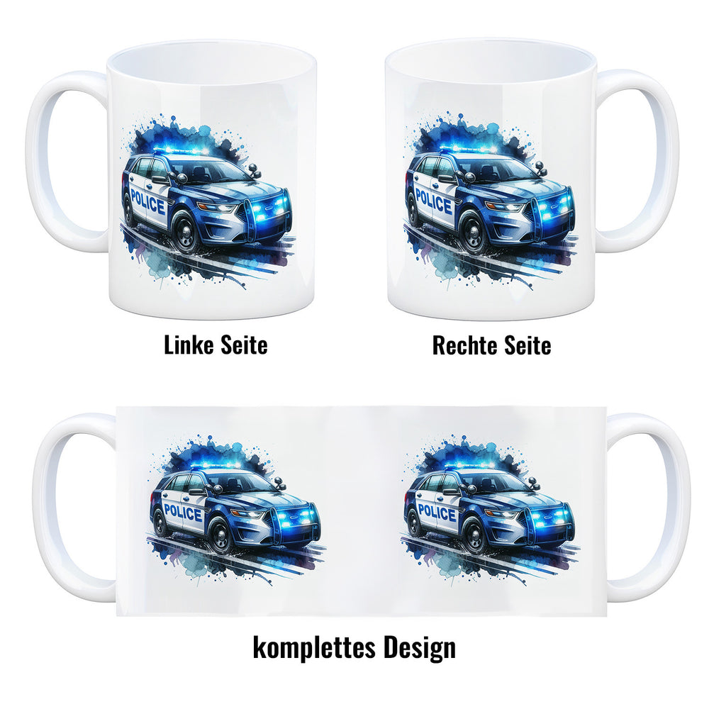 - 1x Polizeiauto im Einsatz Kaffeebecher in der gewählten Ausführung