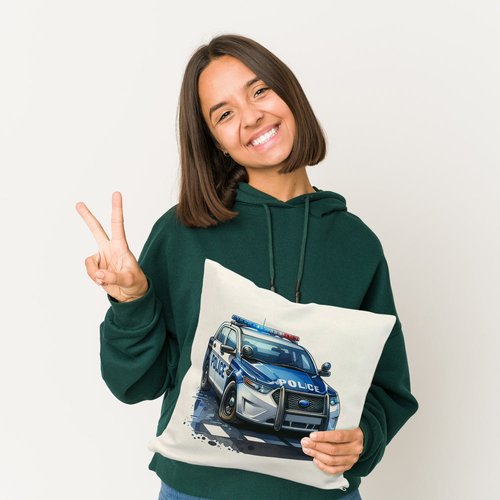 - Lass das Blaulicht leuchten und die Zzz's fließen! Unser Polizei Einsatzfahrzeug Kissen ist der ultimative Kuschelkomplize für deine Sicherheitsbedürfnisse. Ausgerüstet mit dem Spruch „Im Notfall kuscheln!“, ist es bereit für jede Gemütlichkeits-Mission.