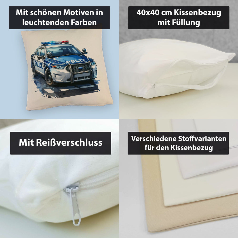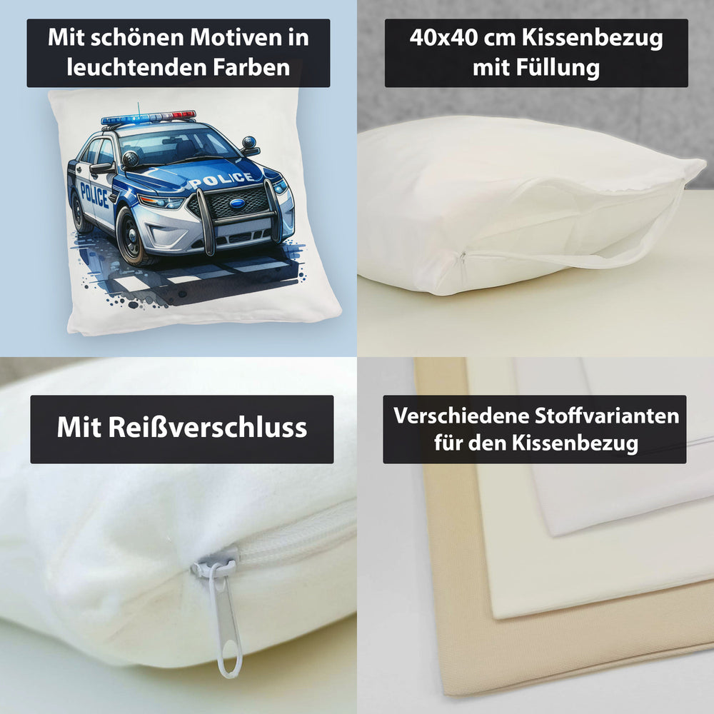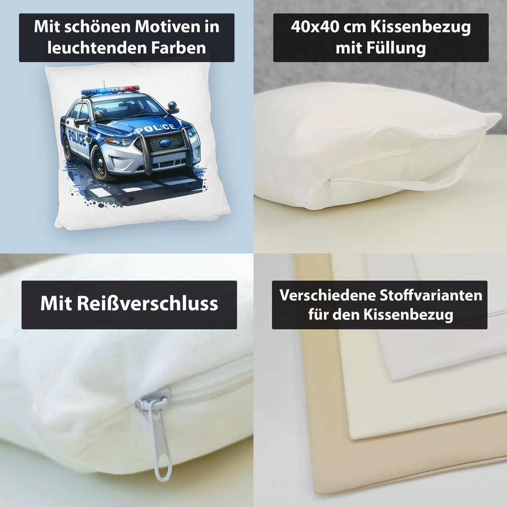 - 1x Polizeiauto mit Blaulicht Kissen in der gewählten Ausführung